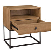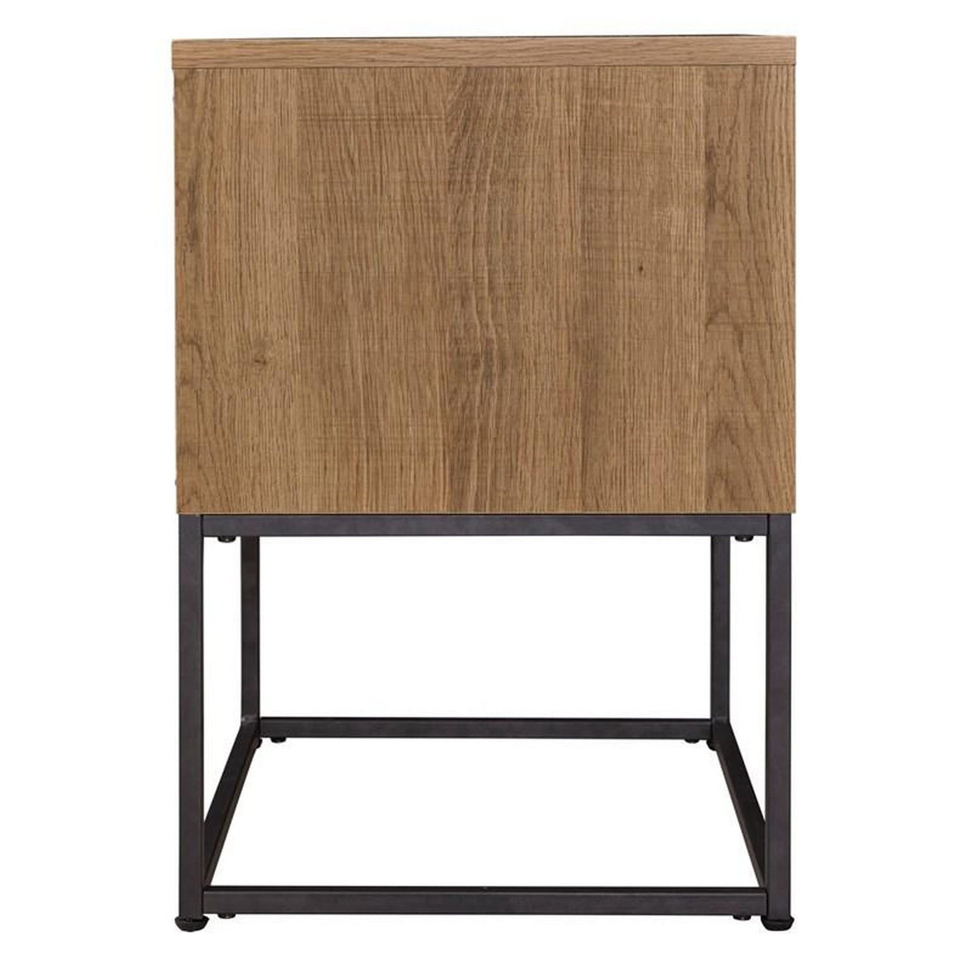 Mila 22 Inch Modern Wood Nightstand On Metal Base, Open Shelf, Brown