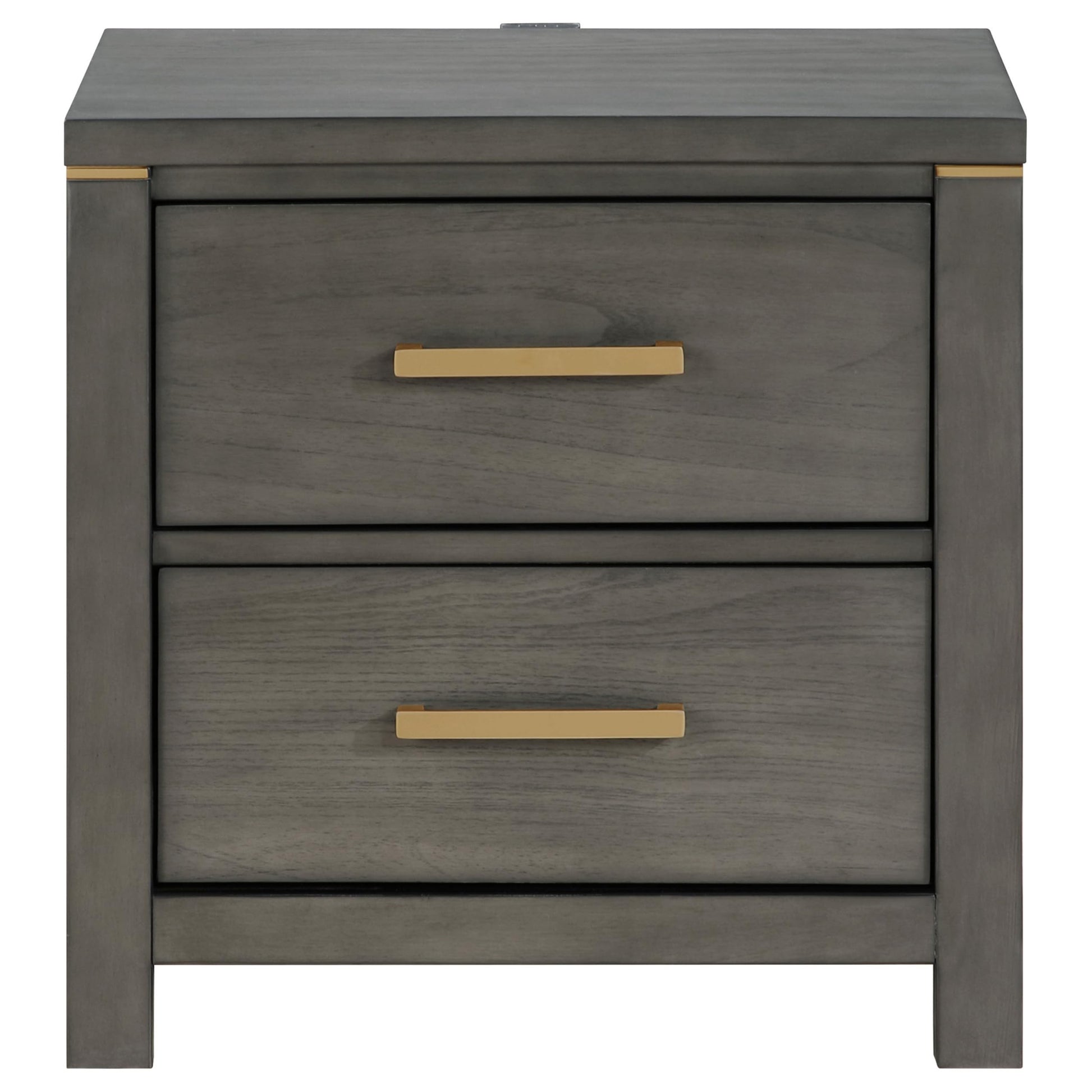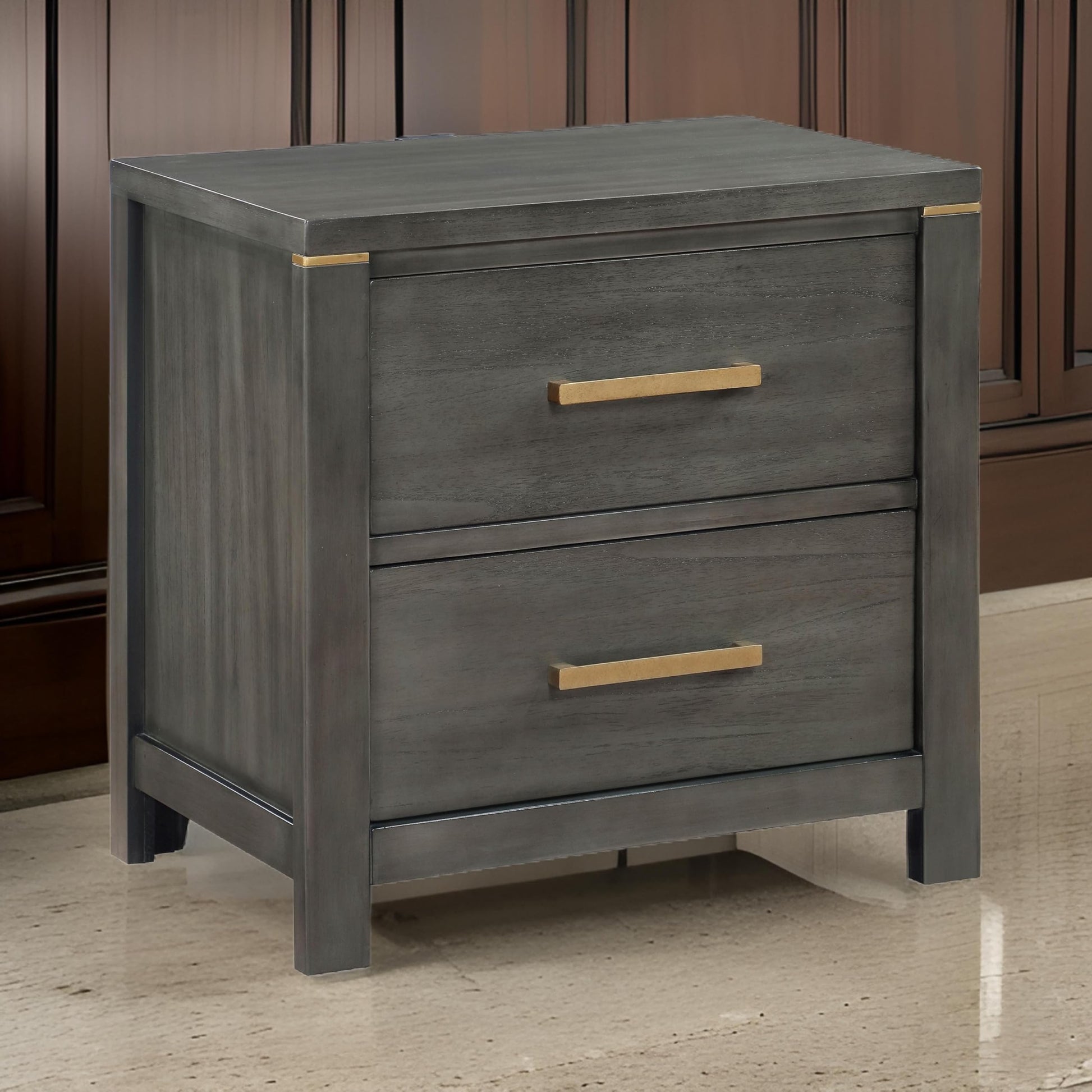 Details: This elegant nightstand offers sleek sophistication. Imagine the dark gray wood grain finish adding a touch of modern luxury to your bedroom. Two drawers, including a felt lined top one, keep essentials organized. Further, the brass hardware adds a touch of elegance, while the built-in USB port ensures your devices stay charged and ready to go. Check out our Ren collection for more options.