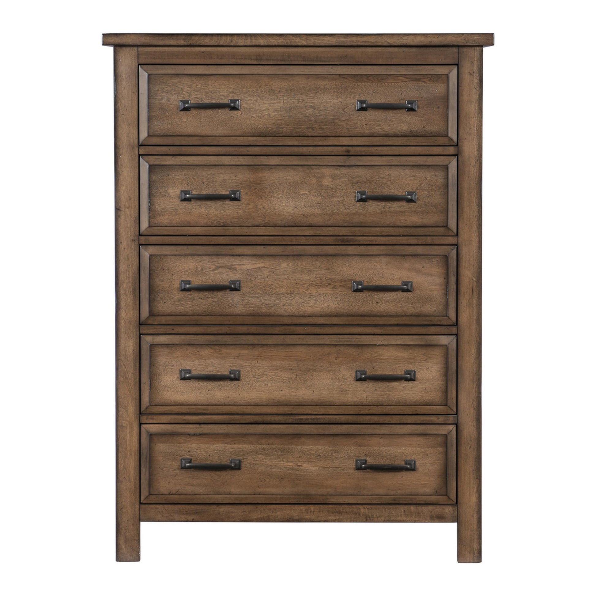 52 Inch Tall Dresser Chest, 5 Drawers, Metal, Light Wood, Brown