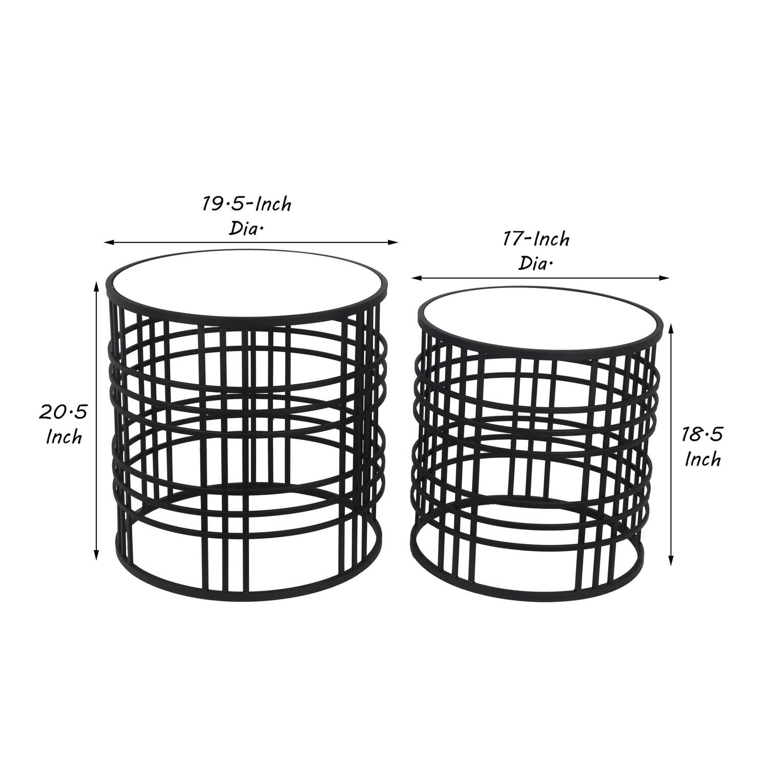Set Mirrored Top Round Accent Table with Open Base, Set of 2, Black