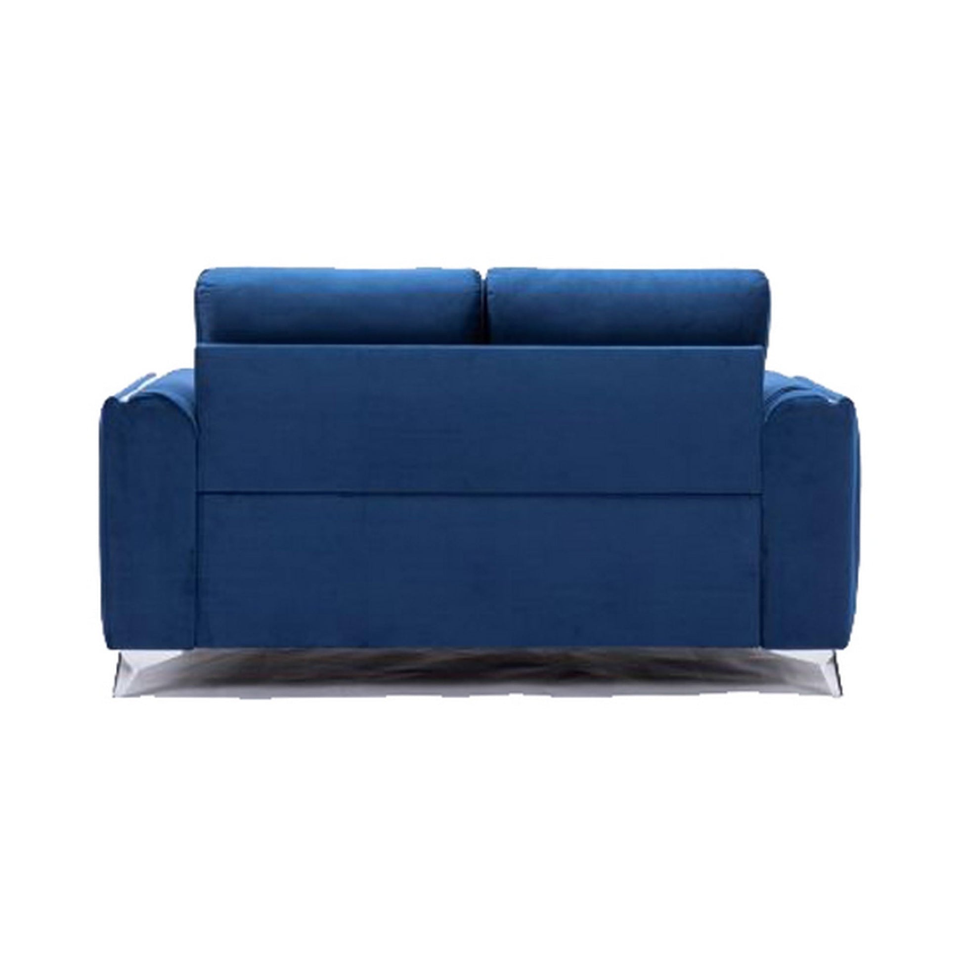 Wiena 59 Inch Loveseat, Velvet Upholstery, Solid Pine Wood, Blue and Chrome