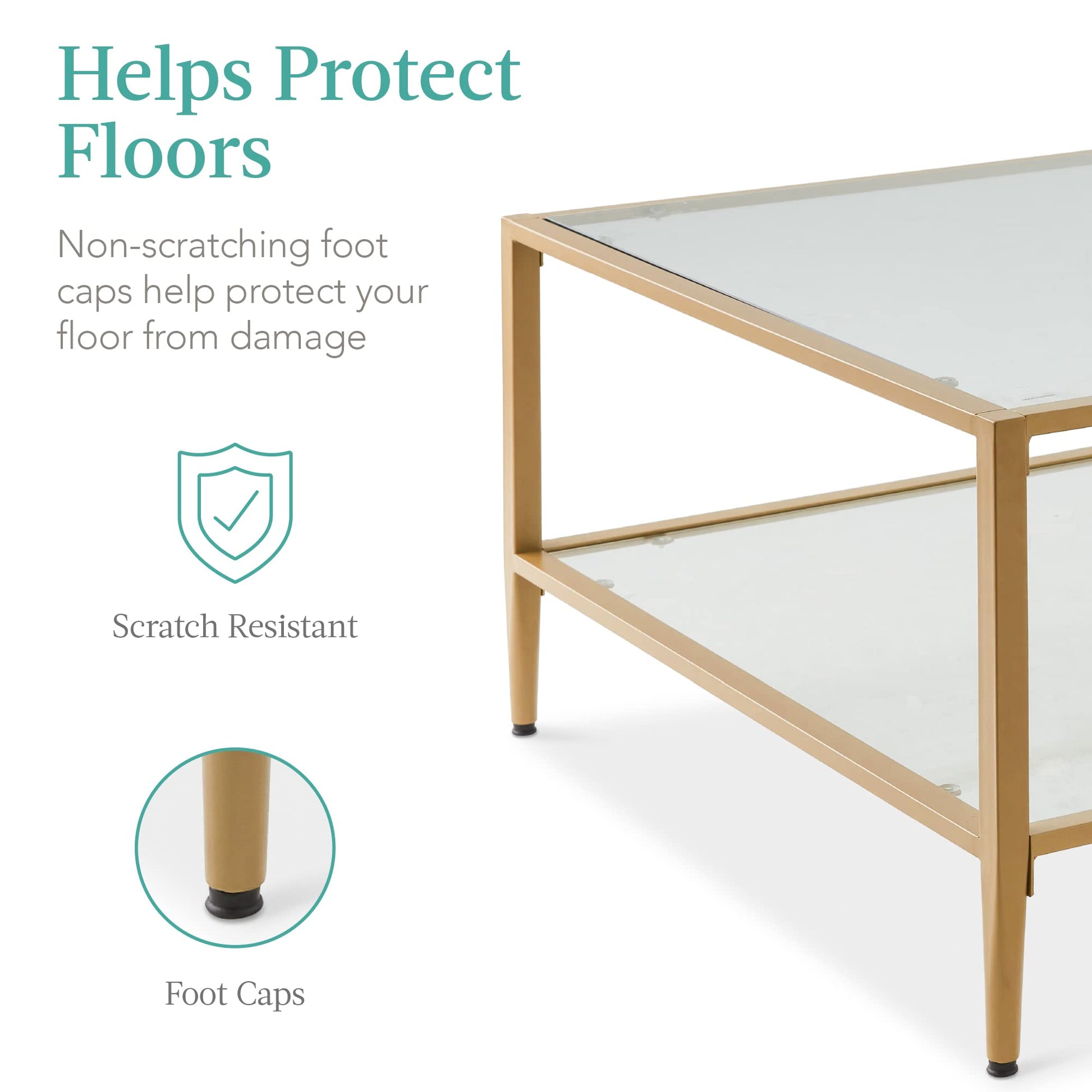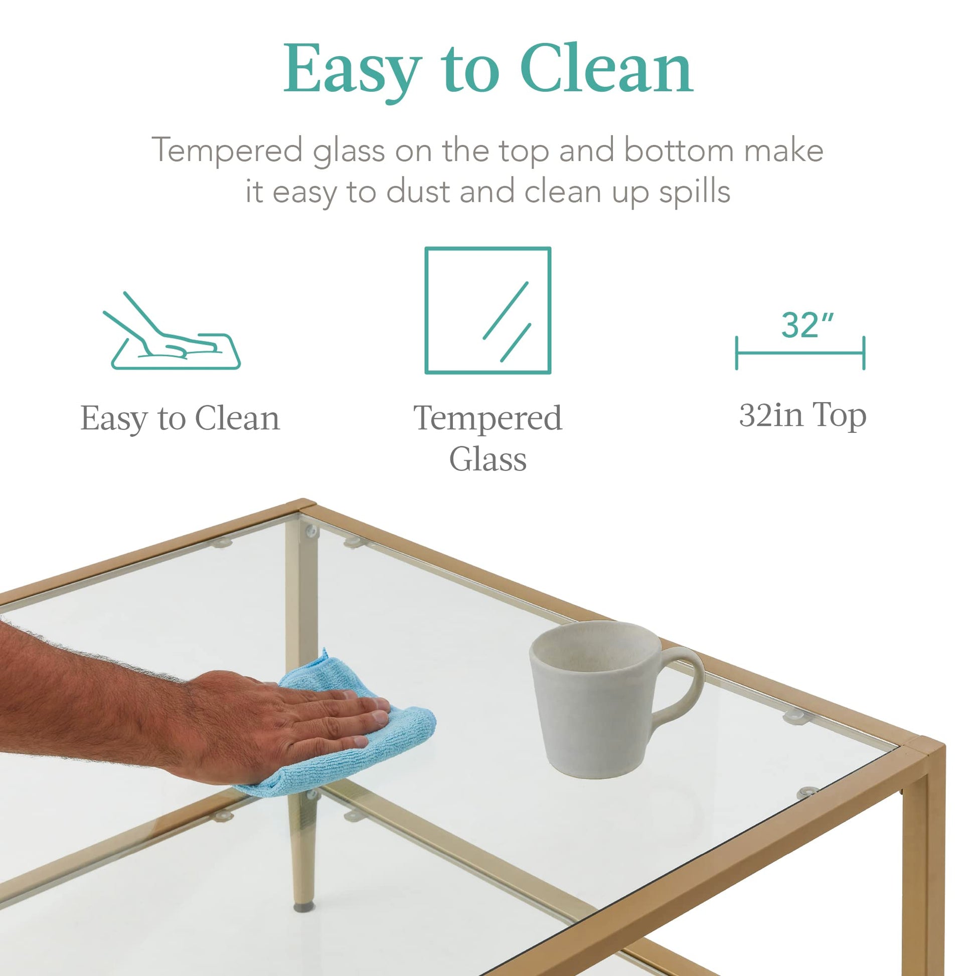 32” Square Glass Coffee Table, Large 2-Tier Accent Furniture for Living Room