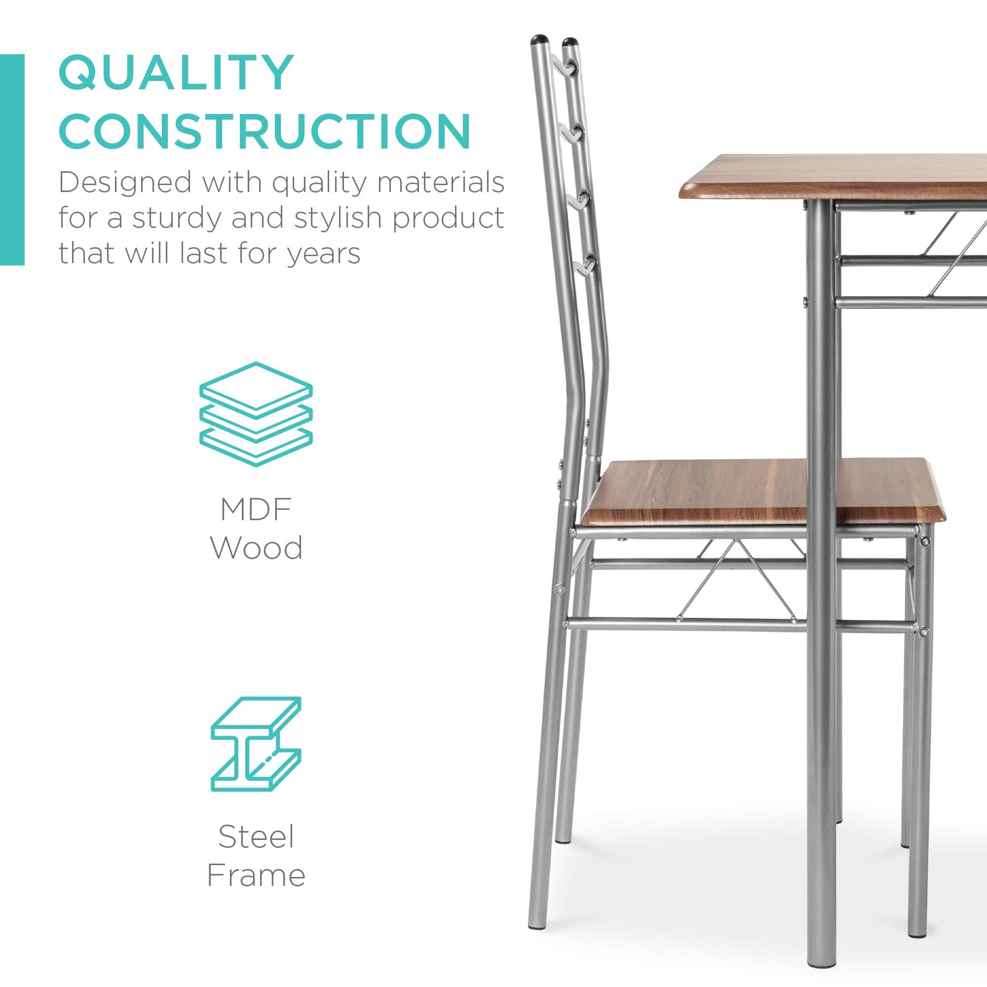 5-Piece 4ft Modern Wooden Kitchen Table Dining Set w/Metal Legs, 4 Chairs
