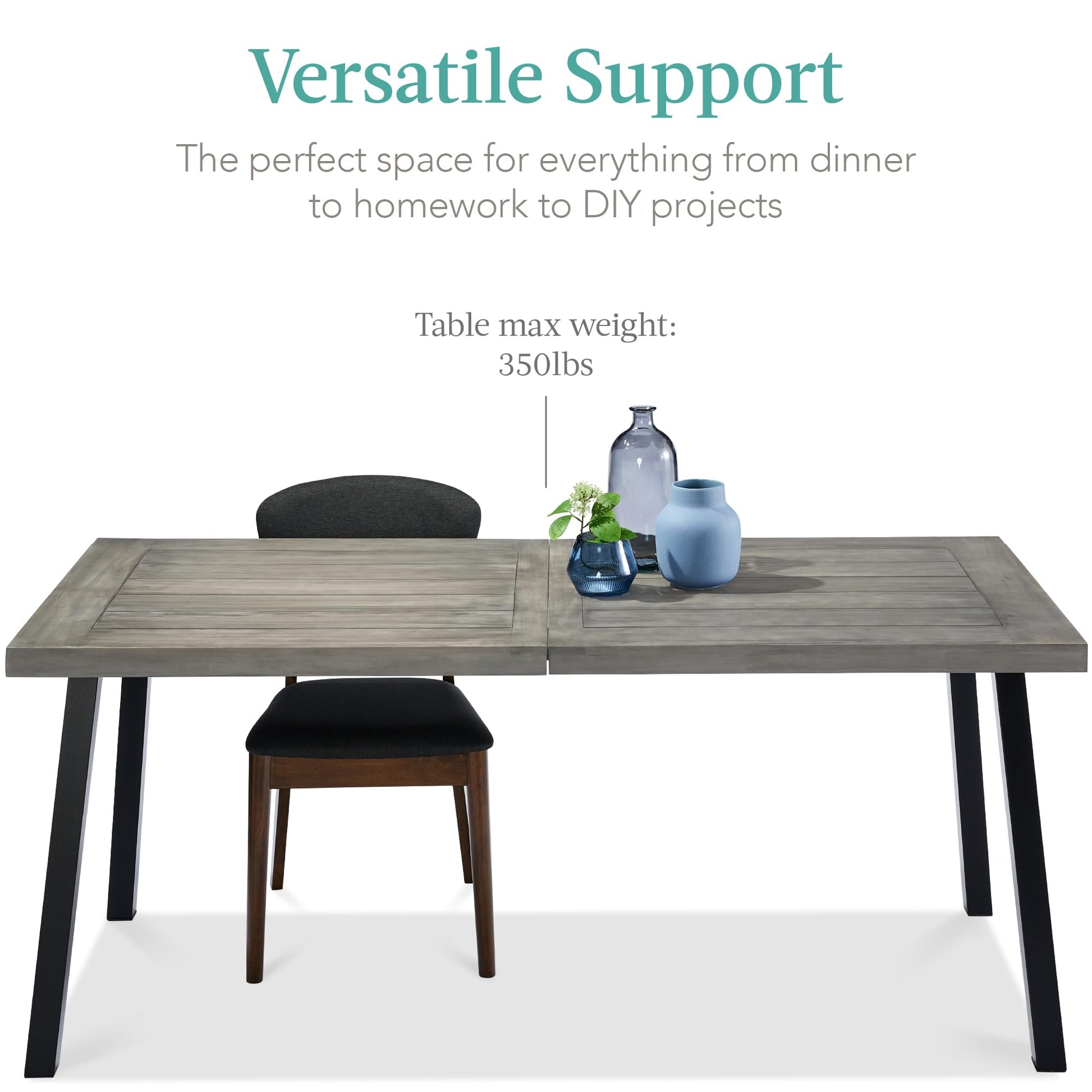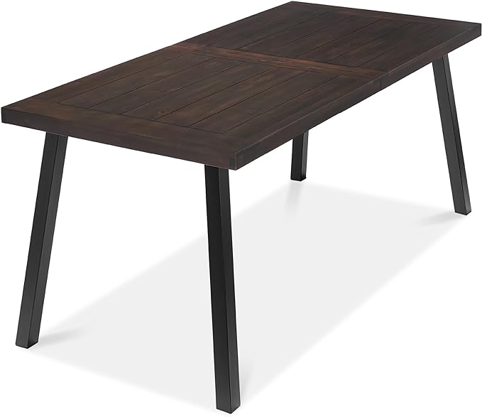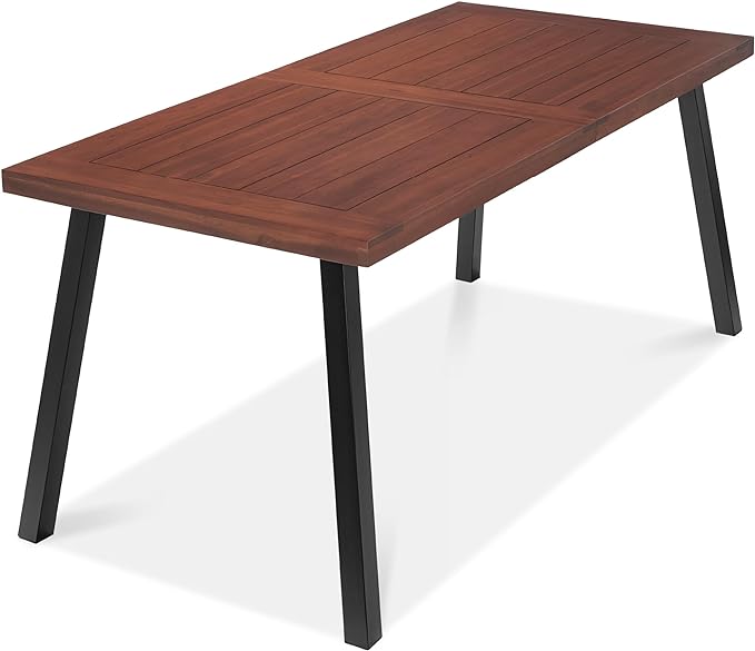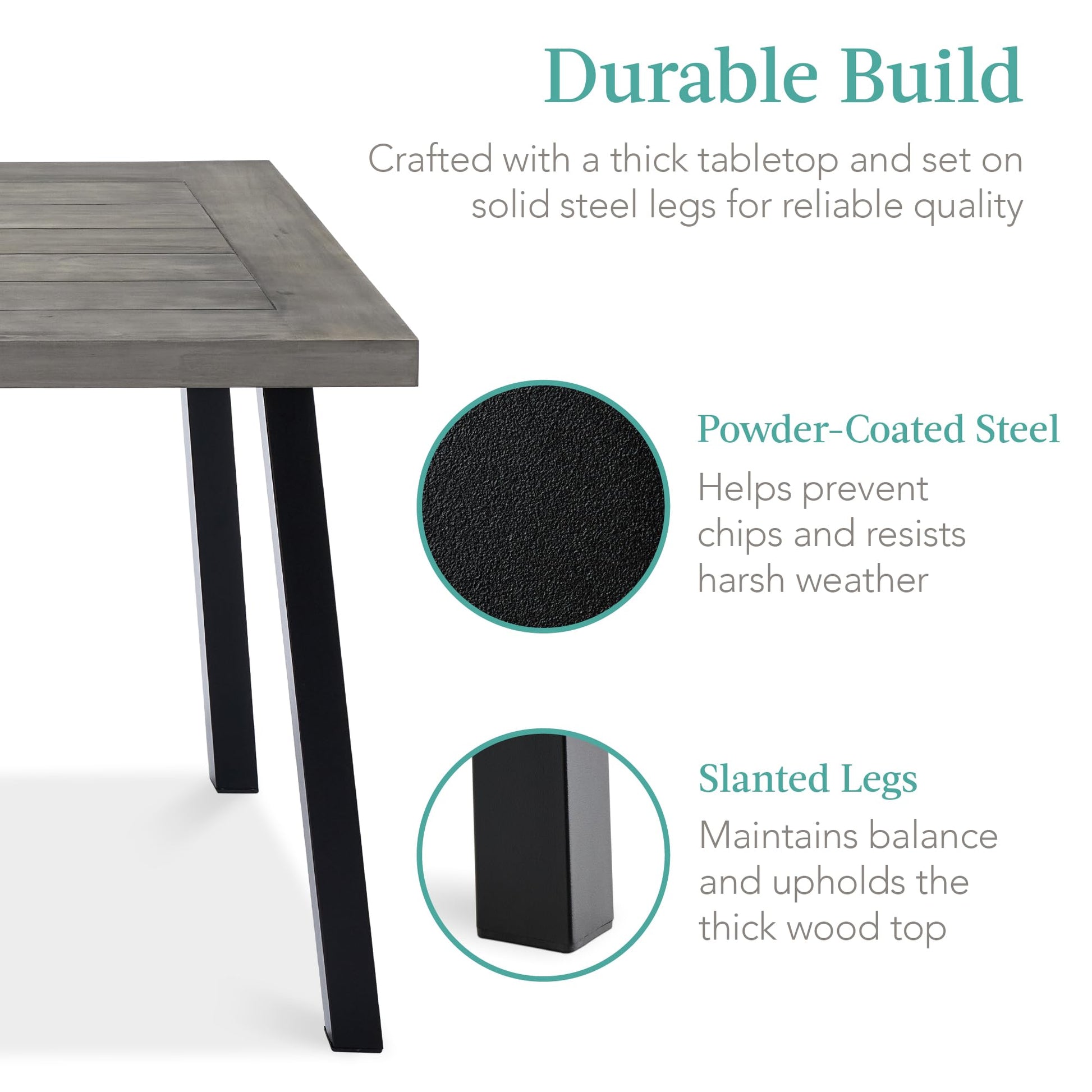 6-Person Indoor Outdoor Acacia Wood Dining Table, Picnic Table w/Powder-Coated Steel,