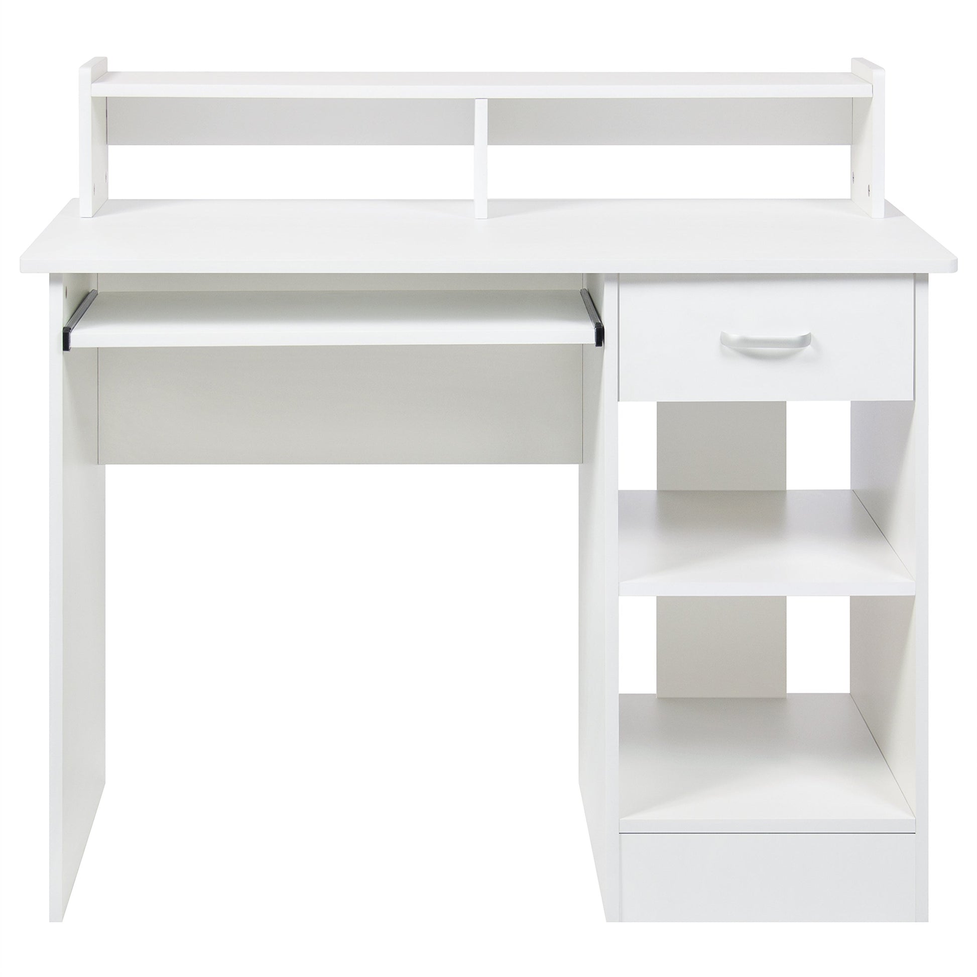- PERFECT DESK FOR WORK: Ideal for home offices or commercial use, this desk is designed with a pullout drawer to store work supplies and a pullout tray for your keyboard and mouse