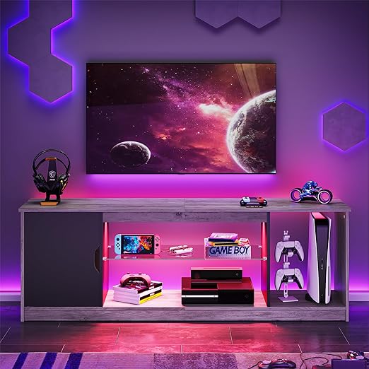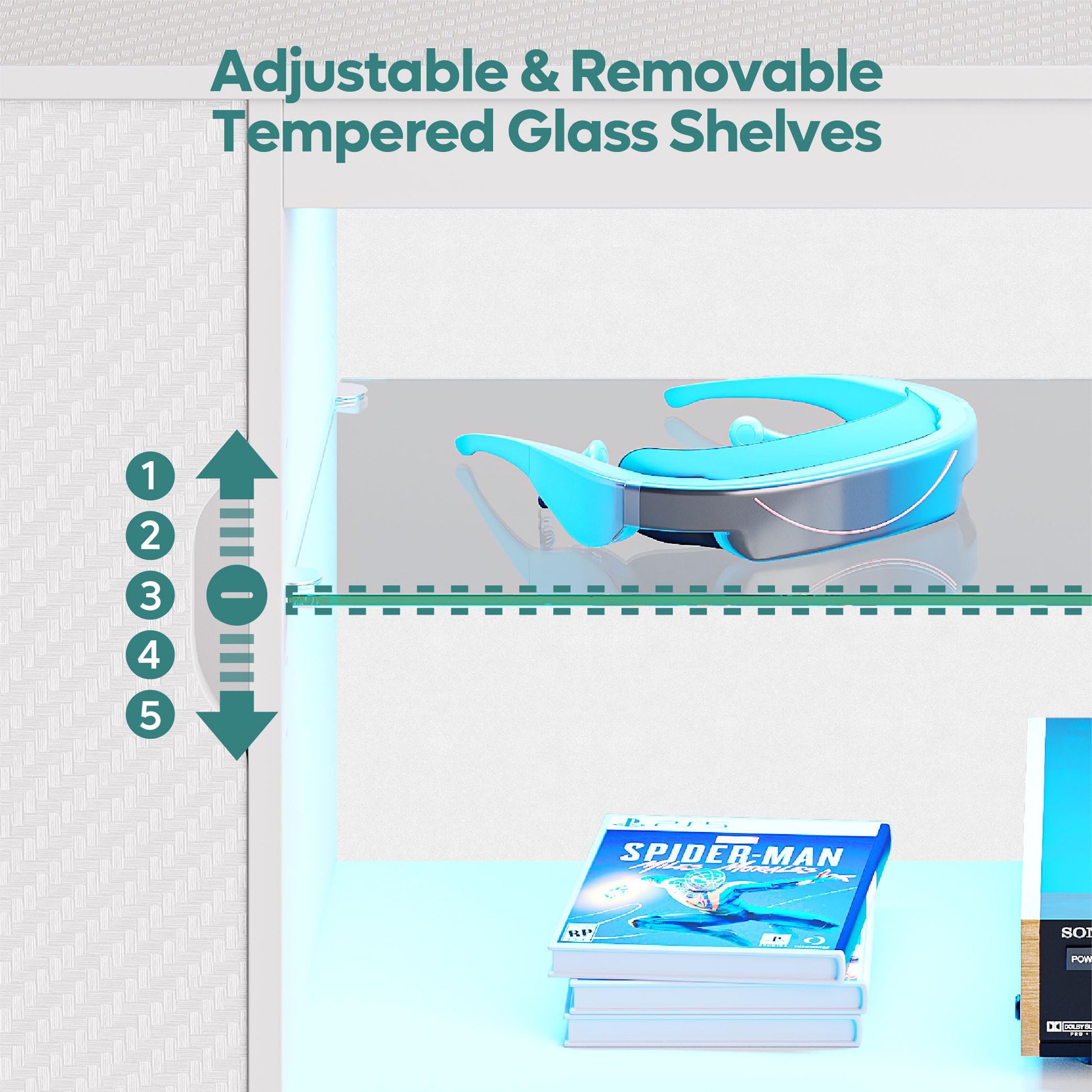 - [Flexible and Customizable Storage: Experience the freedom to personalize your home entertainment setup with the gaming TV stand. 5 adjustable glass shelves allow you to create a custom organization system. Whether you need space for media devices or additional gaming equipment, the versatile TV media can be easily adjusted to accommodate your unique needs. Stay organized and keep everything at your fingertips for a seamless gaming experience.