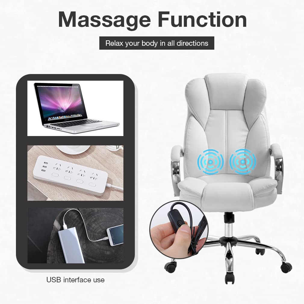 - Thickly cushioned office chair, comfortable, PU leather upholstery with ample padding, oil and water resistance. The backrest has a massage lumbar support that is powered by USB to release your waist fatigue for your tired. Soft PU leather desk chair perfect addition for you in the office, the study room and the meeting room.