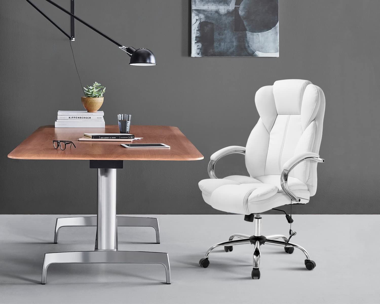- Computer chair have PU leather, lumbar support, and generously padded, this office chair gives you excellent seating experience. Desk chair have commercial-grade components, supports up to 250lbs.