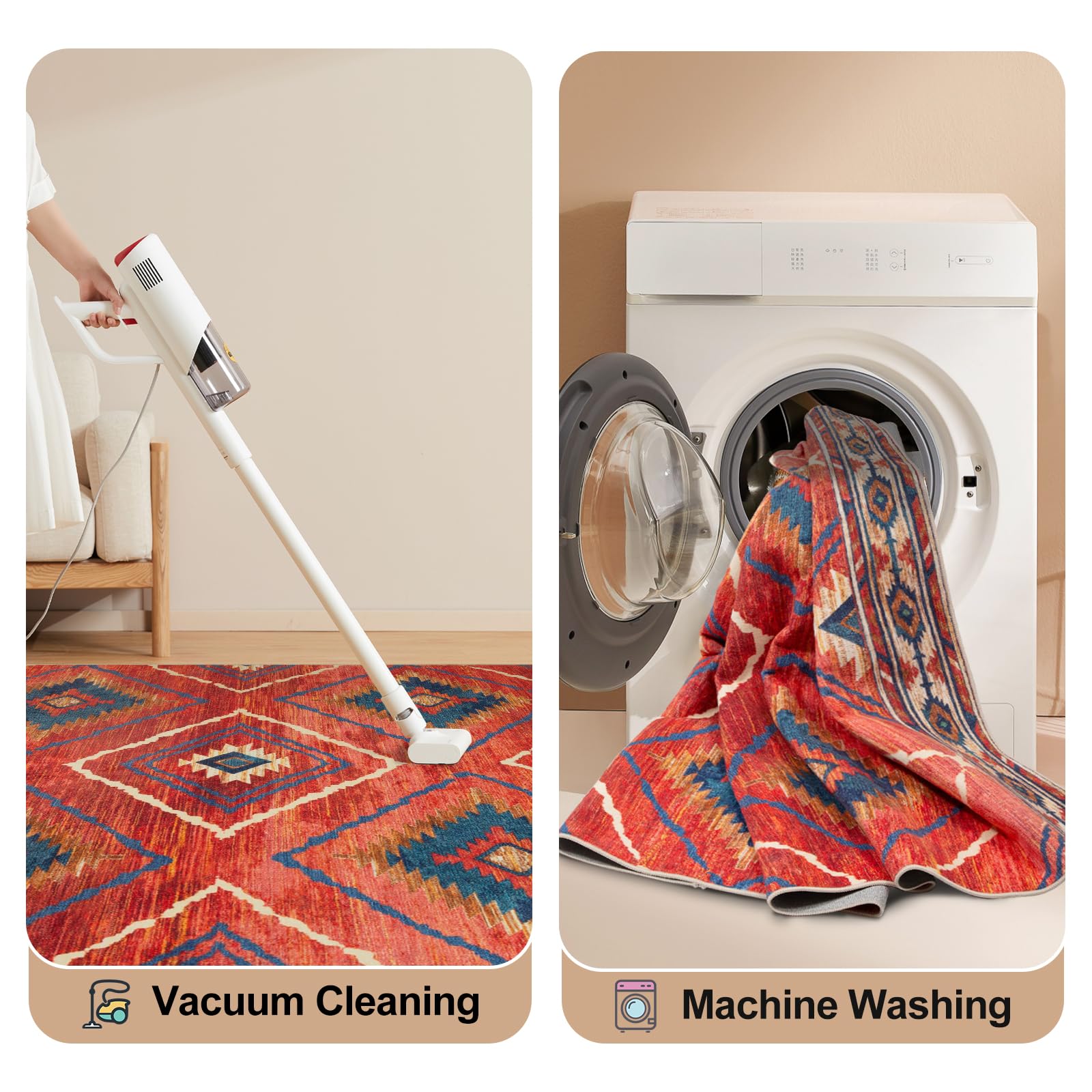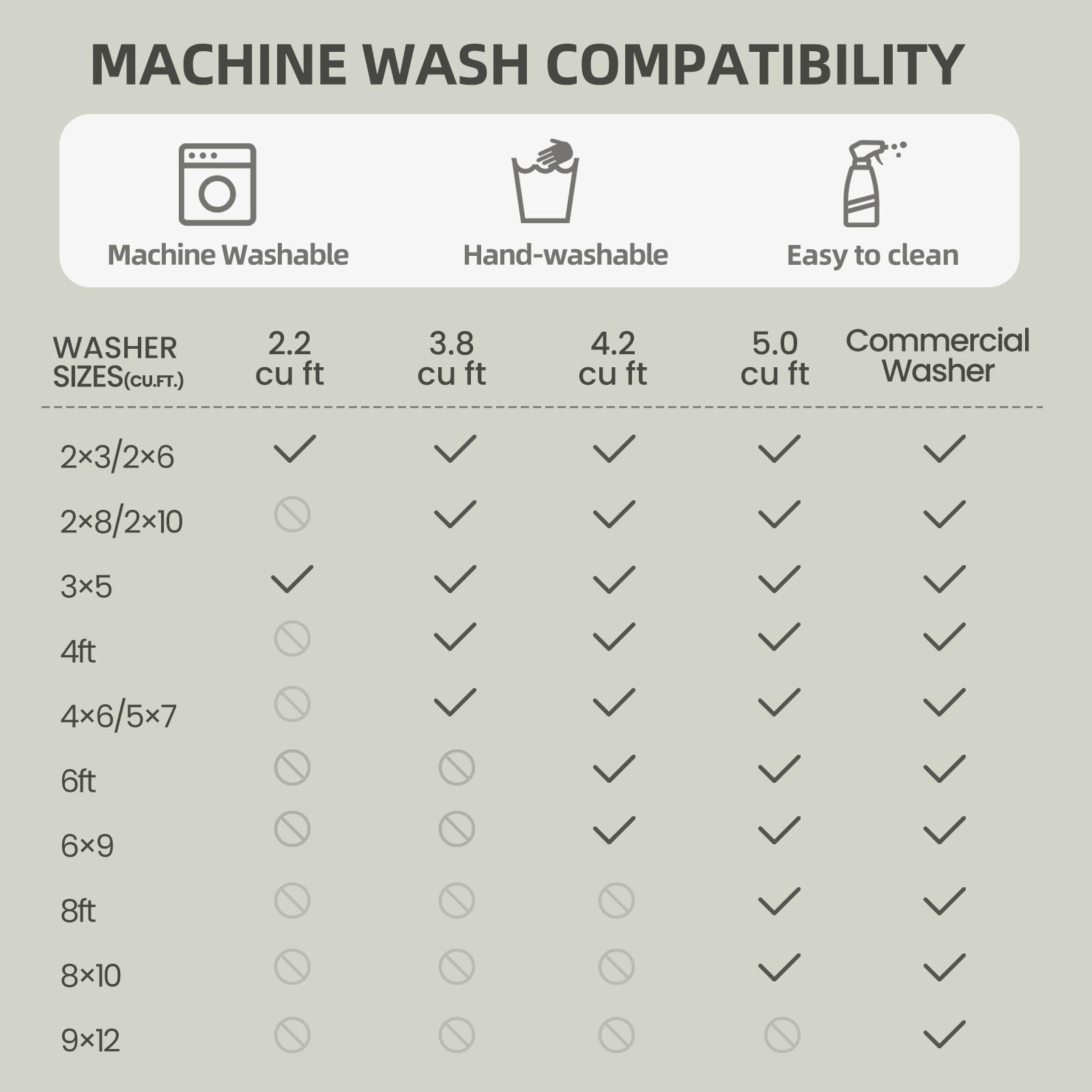 - Machine Washable:The rug is machine washable, machine wash or hand wash are all available. We suggest to wash it in cold water. Vacuum or robot vacuum cleaner are all recommend. You can spot clean the rug with a rag for small stain. No bleach and no high temperature ironing.
