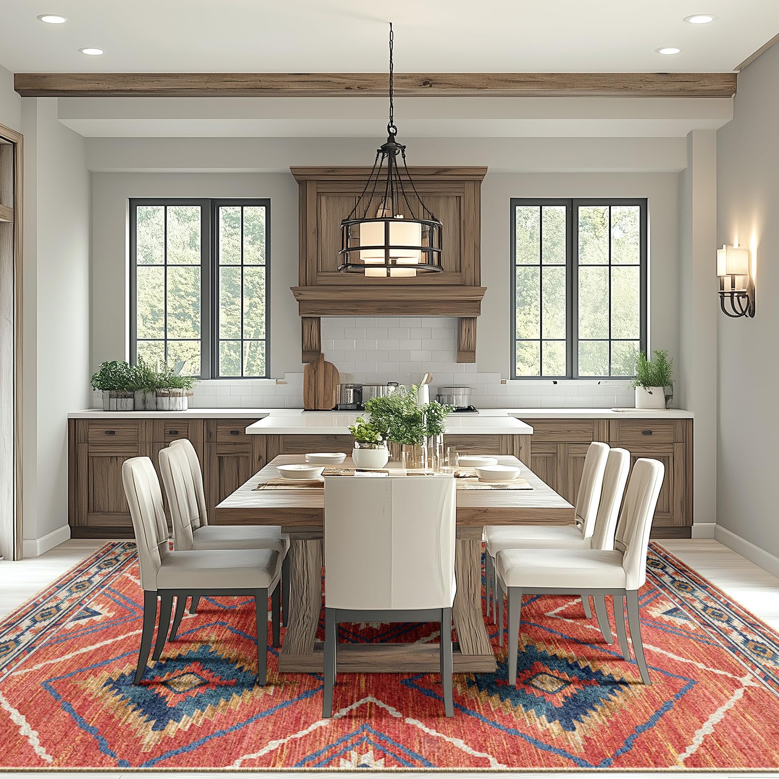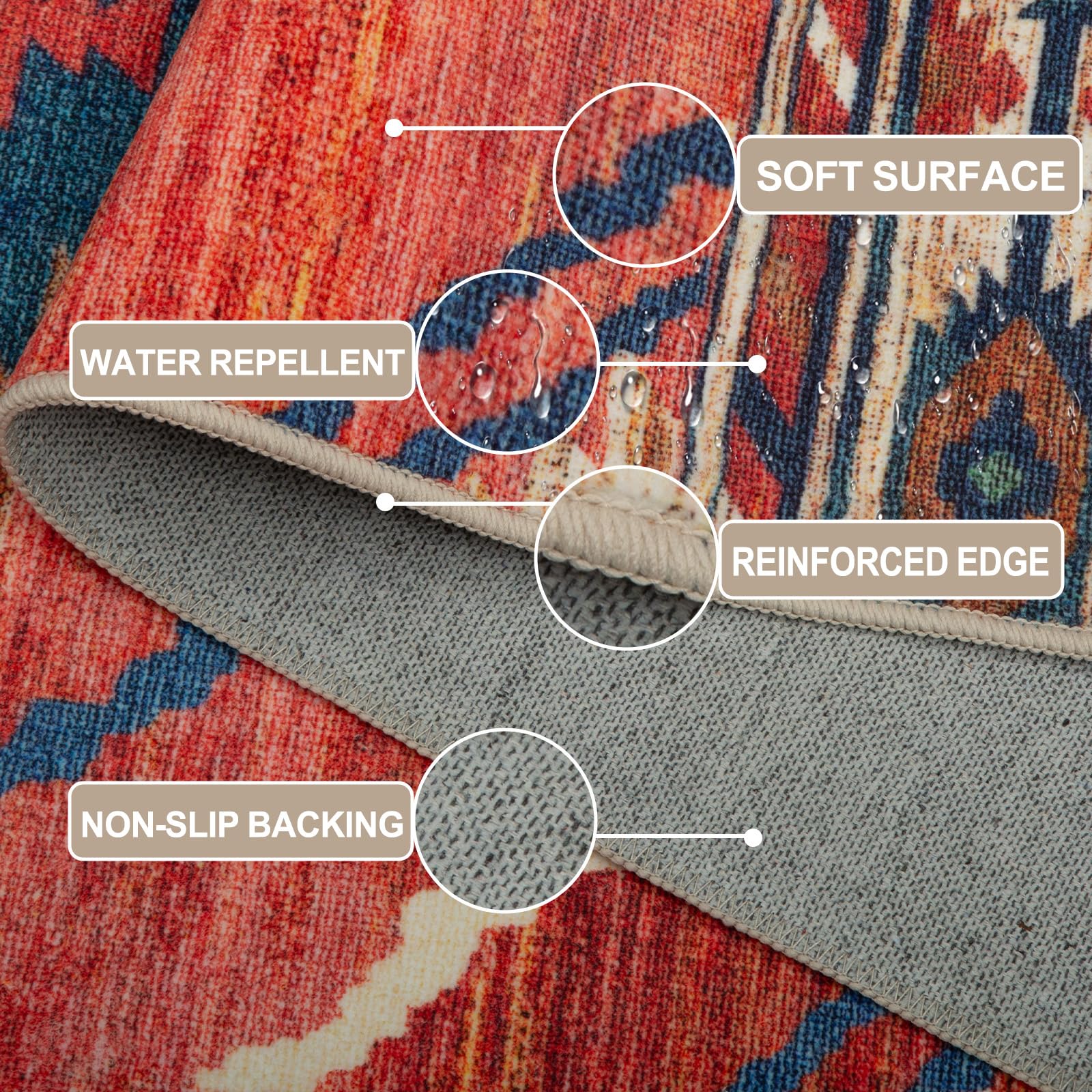 - Water Repellent & Multi-Use:And this area rug features a vintage distressed print design, combines tribal and farmhouse element, and add a sense of vintage and artistic to your home. Available in a variety of colors and sizes, the rugs can meet different living spaces requirements. match for entrance, foyer, hallways, kitchen, living room, dining room and other high traffic area indoor.The Rug surface is Water Repellent, stain-resistant and easy to clean.
