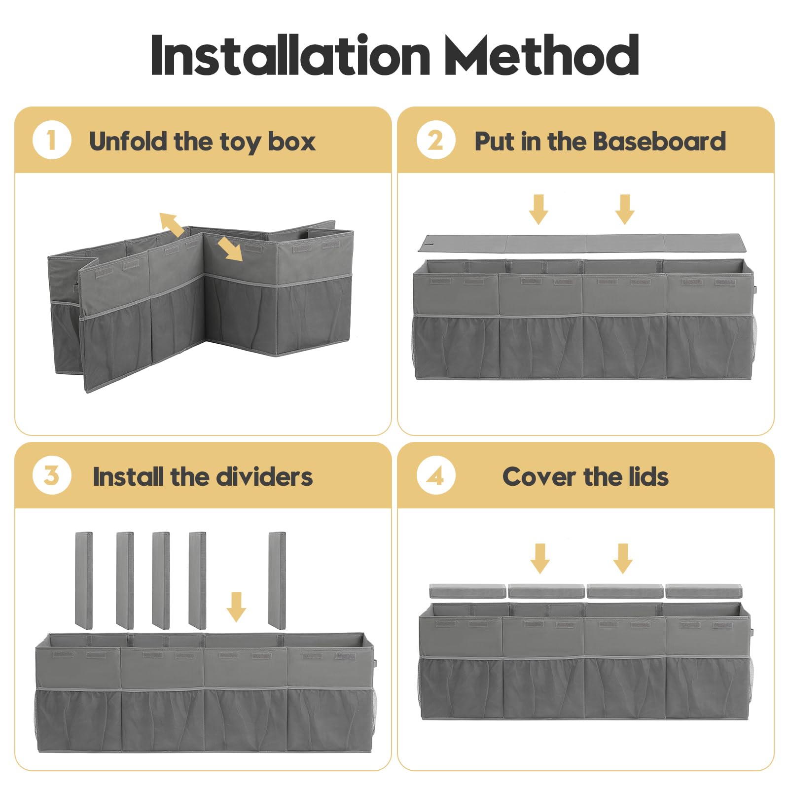 - 【REMOVABLE COVER】Kids toy storage contains four removable covers. Keeping the lids on protects the toys from dust. You can remove the giant toy box's covers when you don't need them, increasing the vertical storage space.