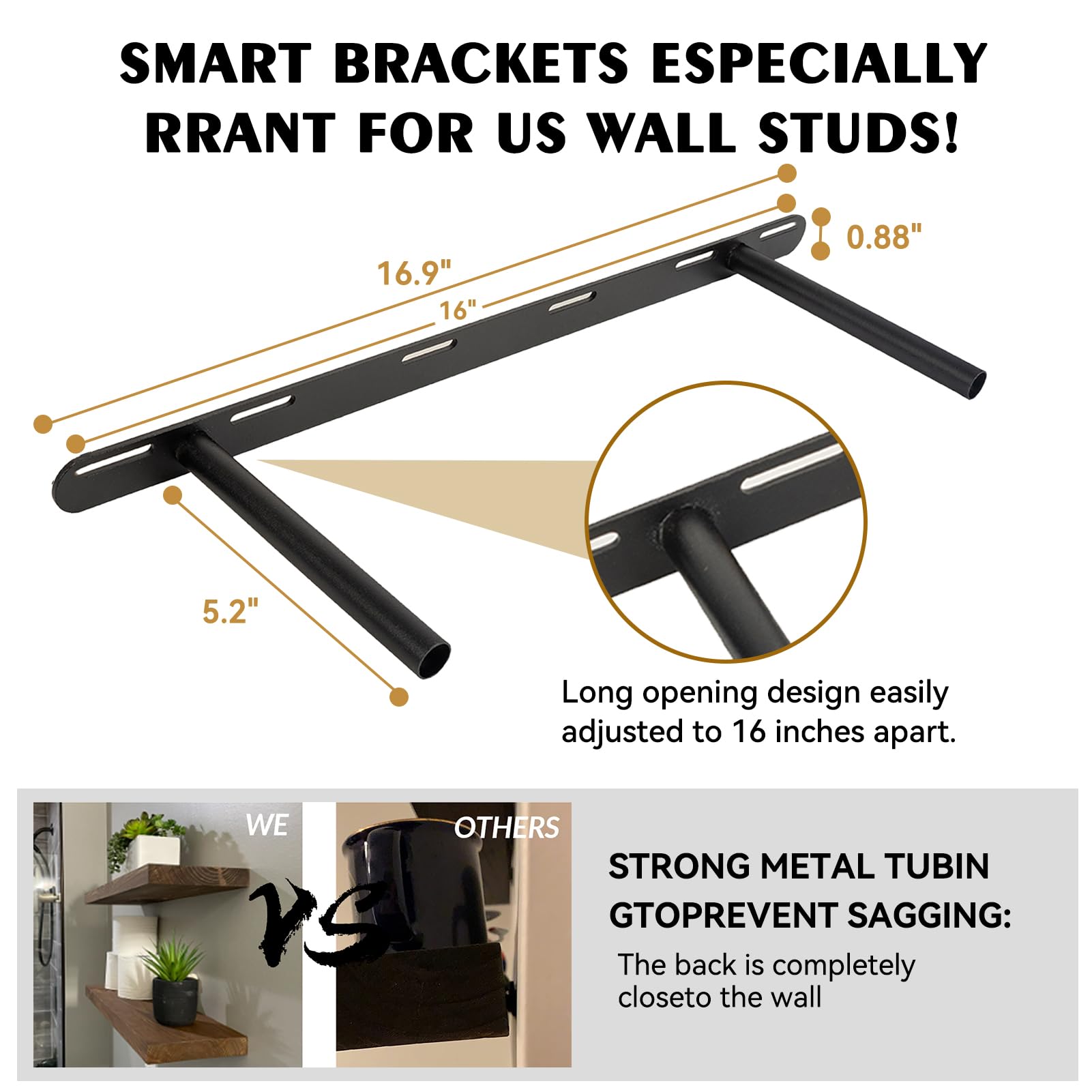 - NO SAGGING! MORE PERFECT FOR AMERICAN WALLS : premium wood shelves are built to last and hold up to 50 pounds using our smart brackets designed specifically for American wall studs, which are typically 16 inches apart! The brackets warp slightly upward to prevent the shelves from sagging and falling off!