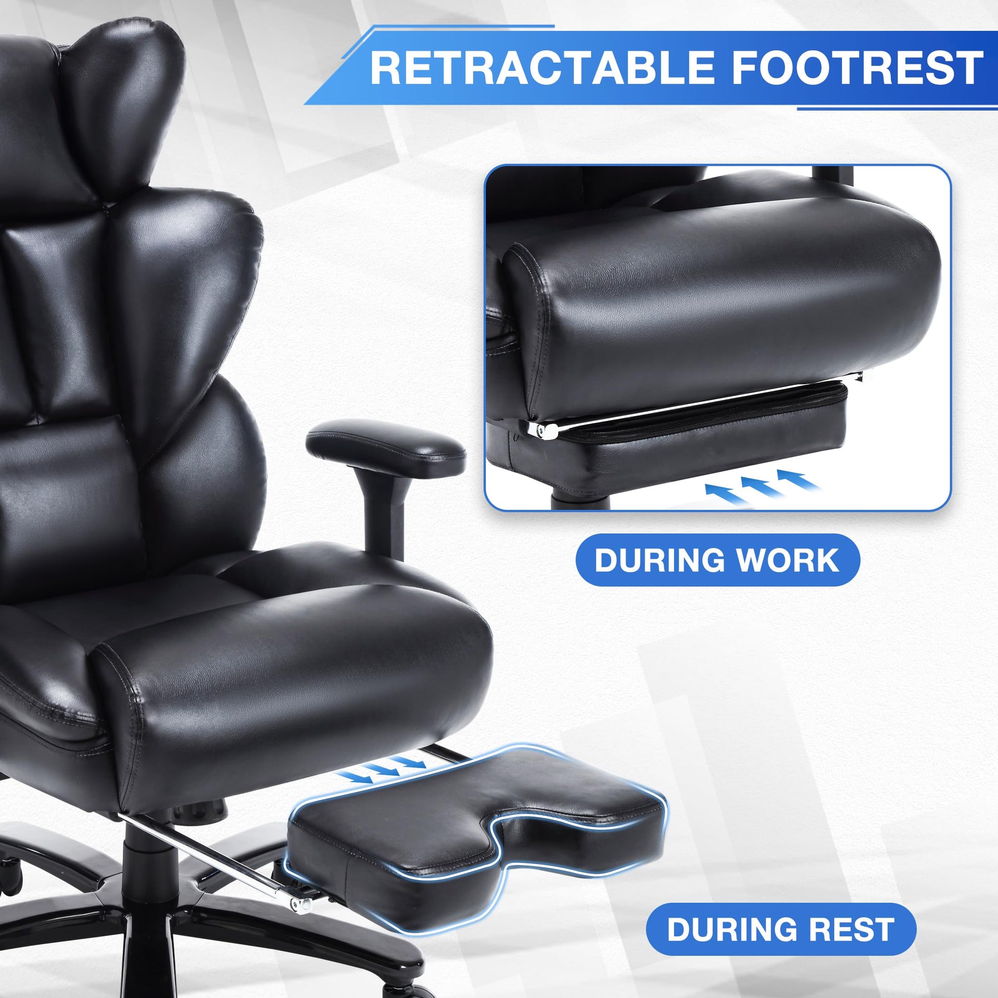 Big & Tall Executive Office Chair | PU Leather, Adjustable Back Support & Footrest