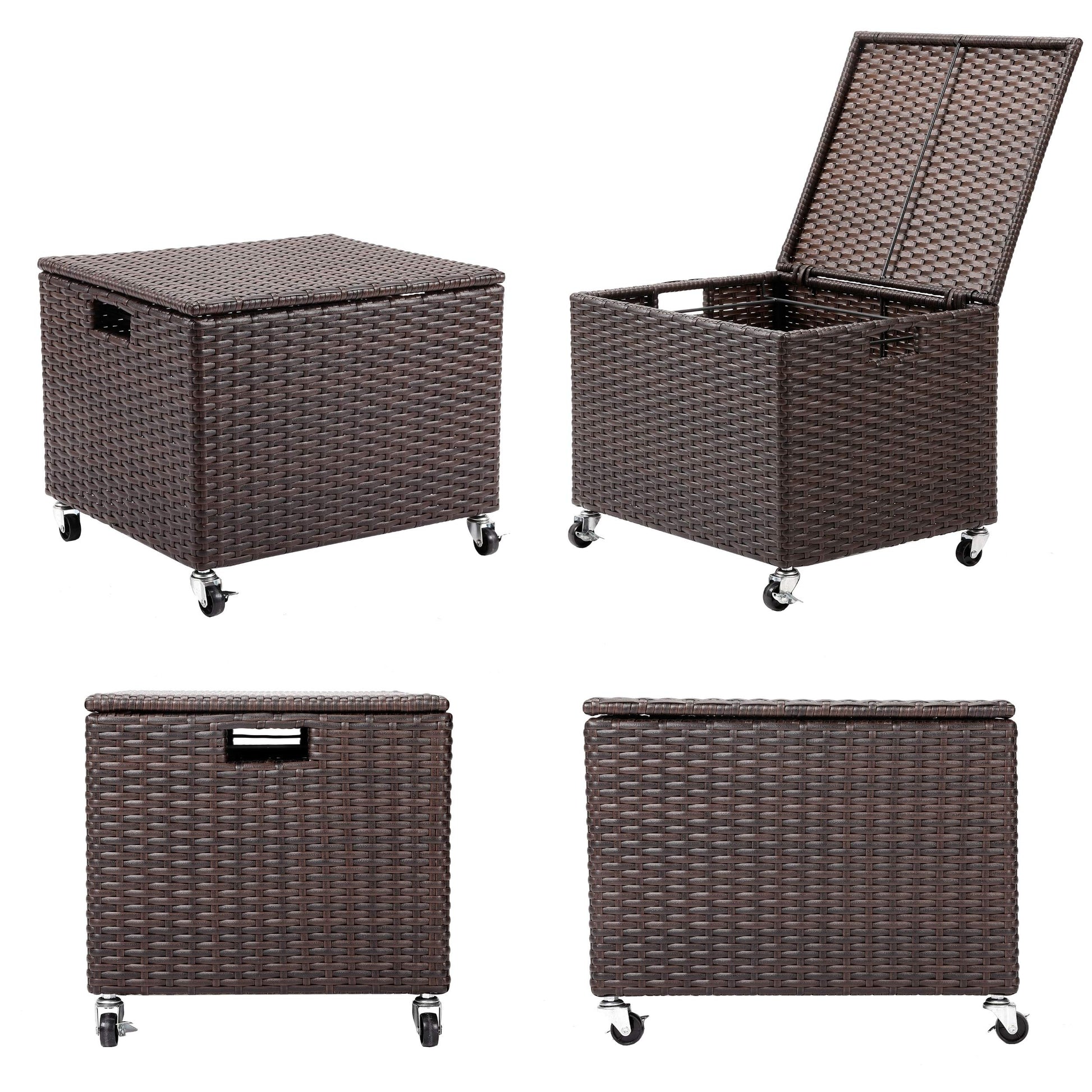 Rolling File Box - Storage Cabinet with Wheels - Weatherproof Rattan-Style Resin Deck Chest