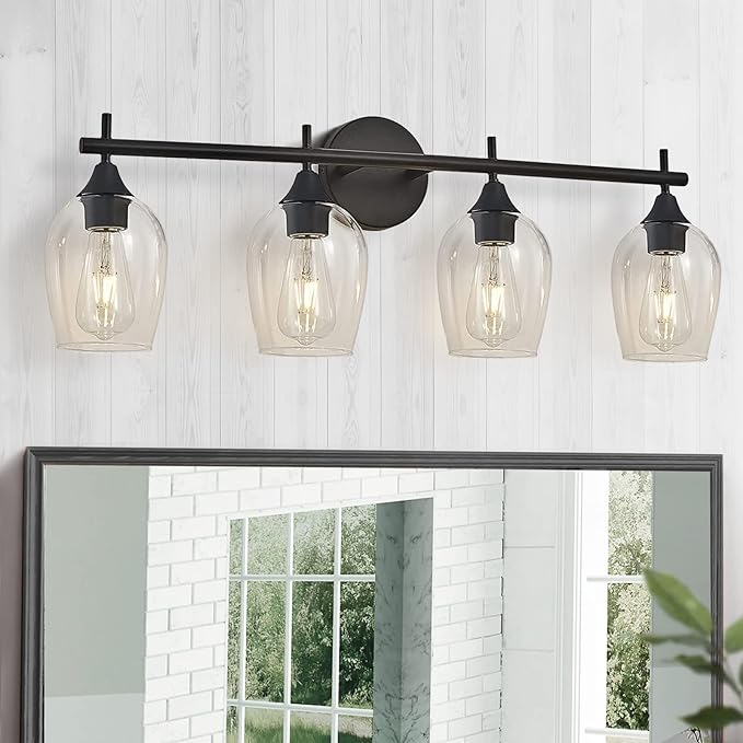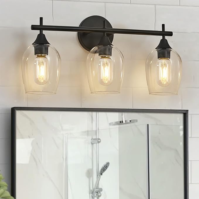 - HIGH QUALITY: Made of high quality metal, this farmhouse bathroom light fixtures is resistant to rust and fading. Equipped with premium clear glass shade. 360° all-around lighting.