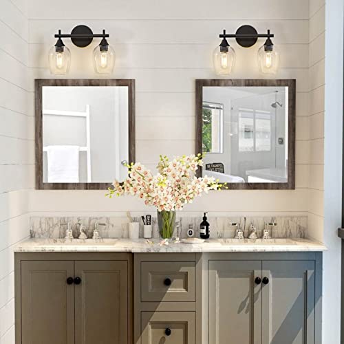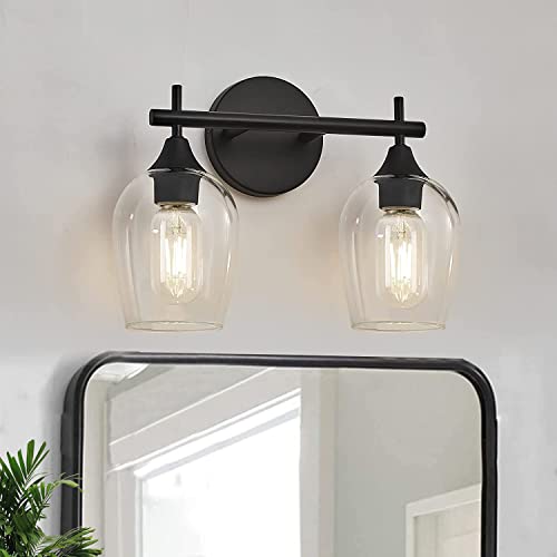 Black Vanity Lights for Bathroom,2-Ligh Bathroom Light Glass Shade