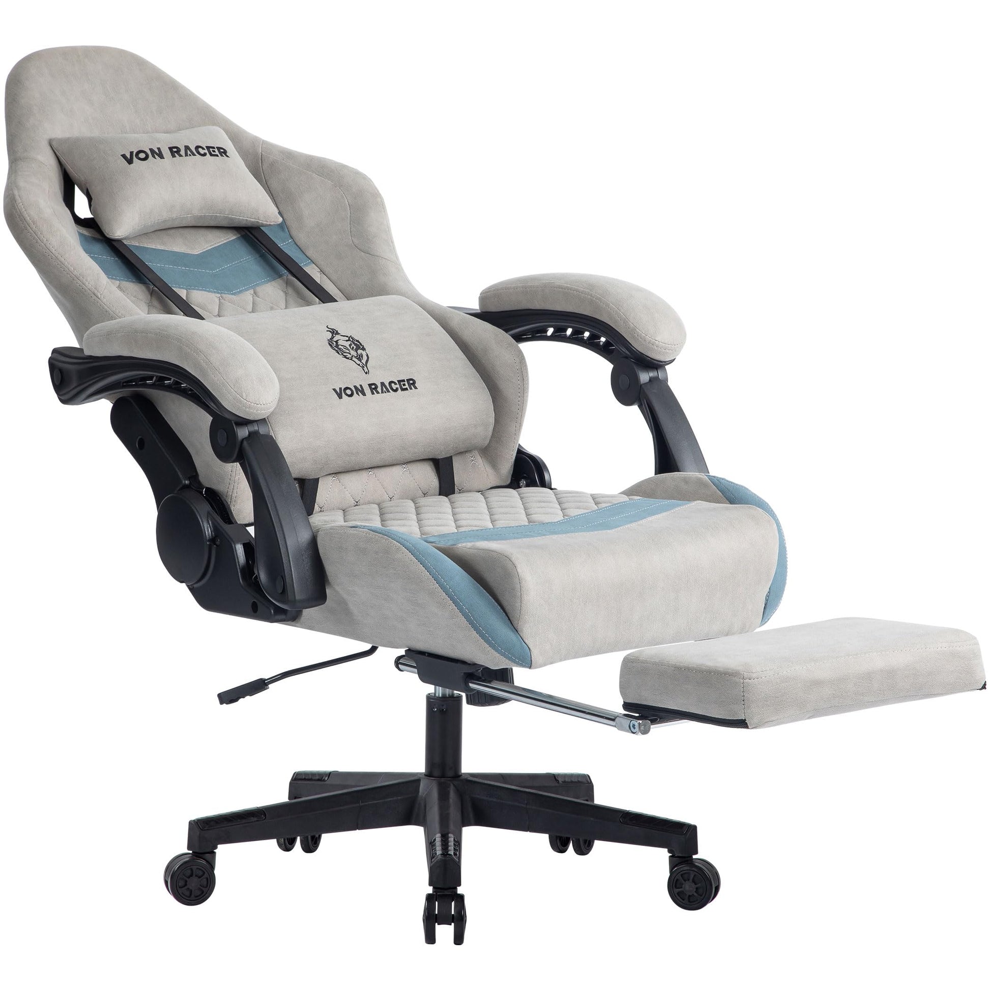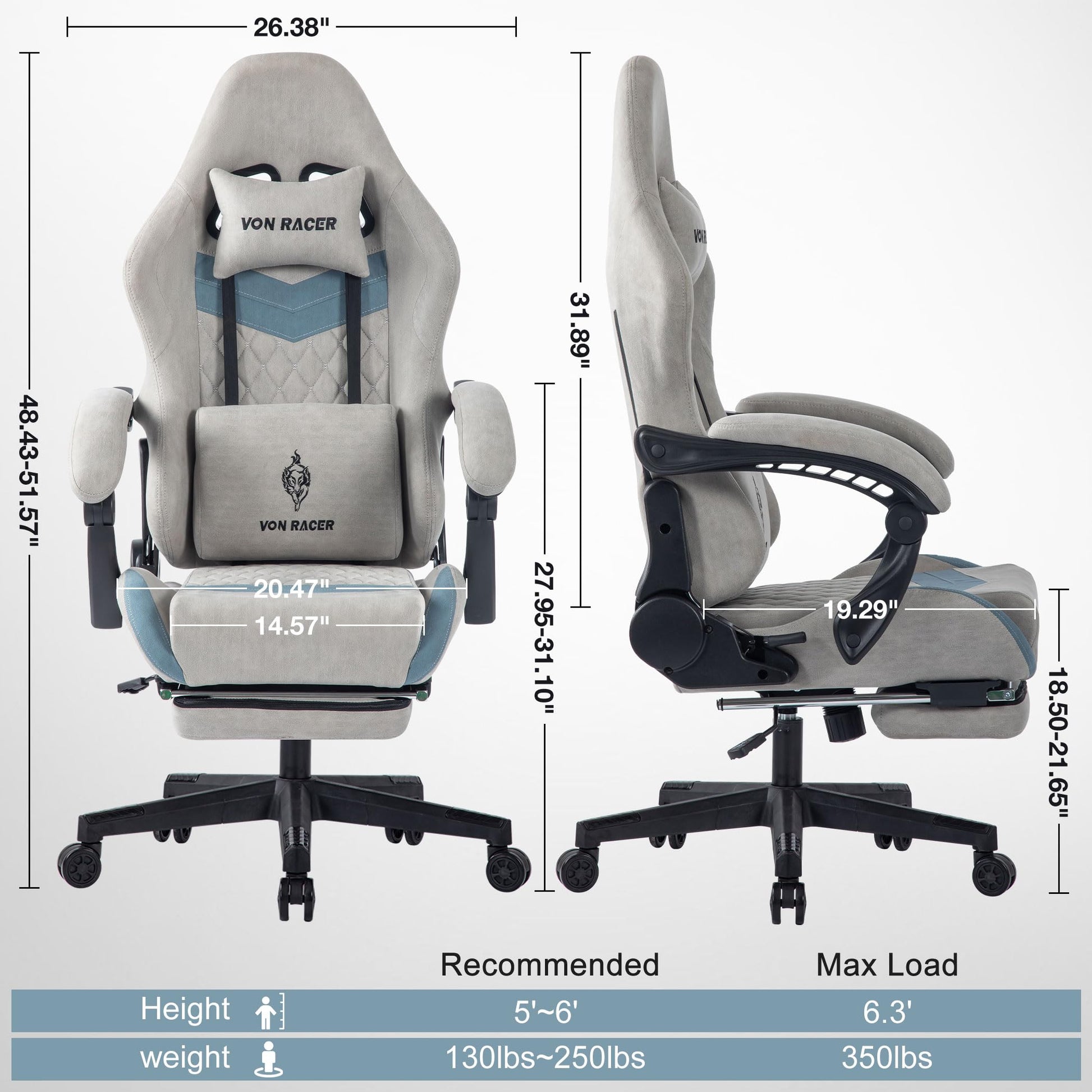 - Ergonomic: Blue Whale gaming chair employs individual headrests and write-up adjustable lumbar support cushions its interior is padded with memory foam. Ensure this game chair gives the user a different back and head support experience. Unique hand-stitched embroidery of the Grey Gaming Chair on the headrest and lumbar cushion. Makes this video gaming chair stand out like no other