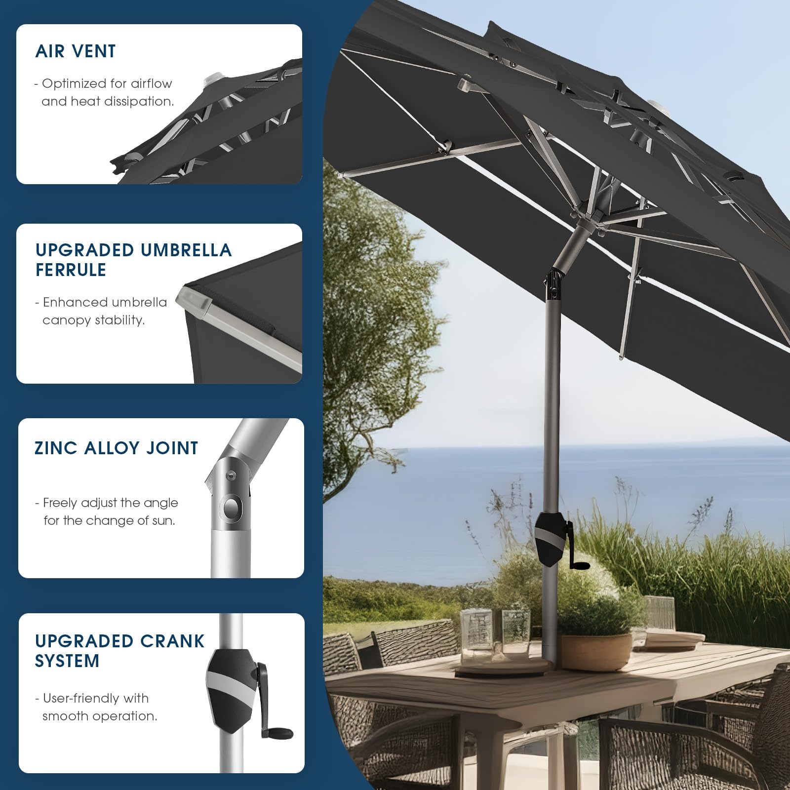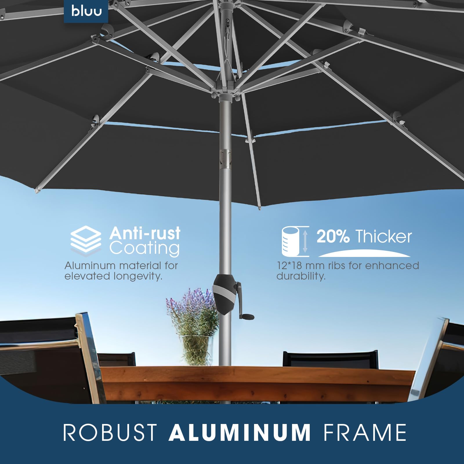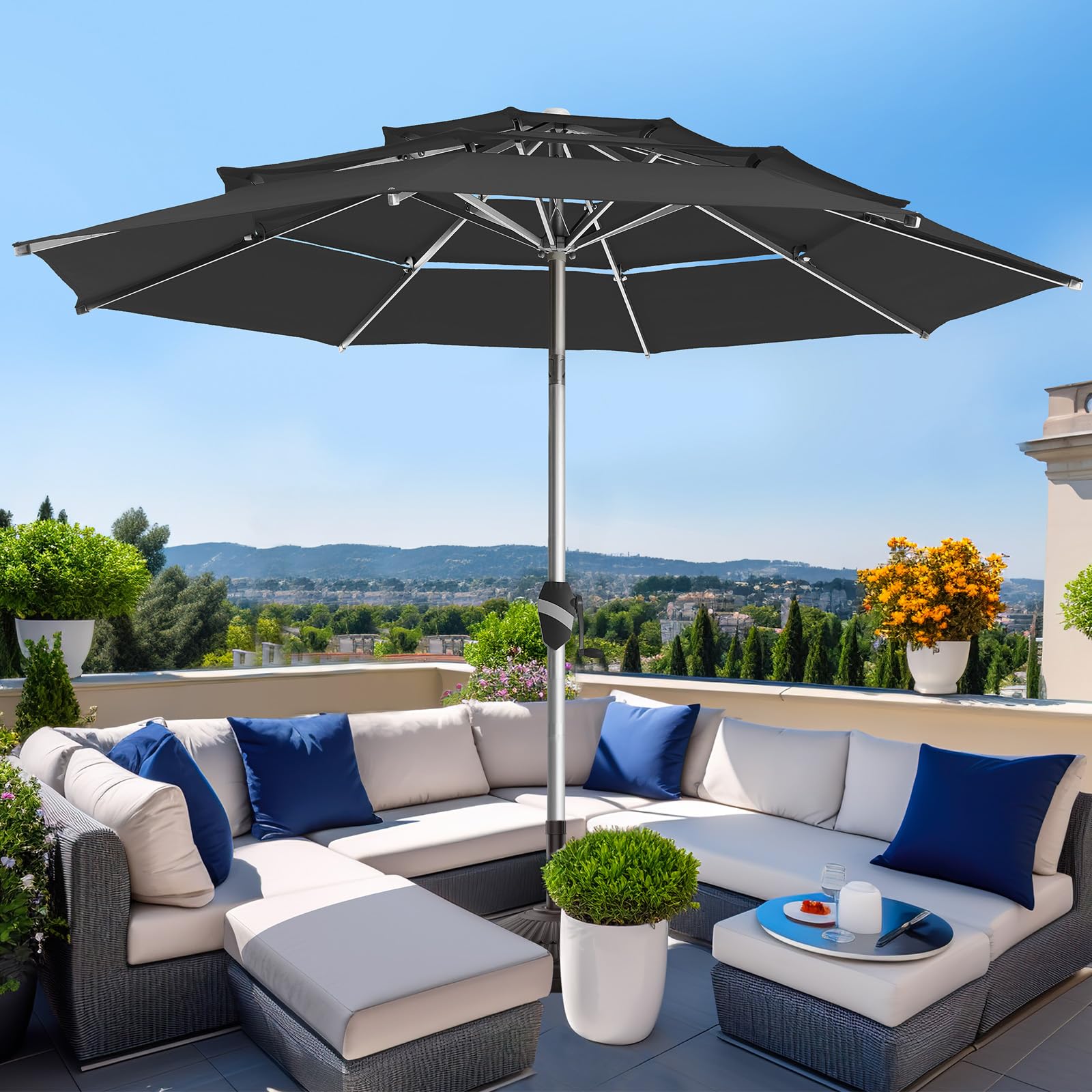 9 FT 3 Tiers Aluminum Outdoor Patio Umbrella, 5-YEAR Fade-Resistant Outdoor Market Table Umbrella