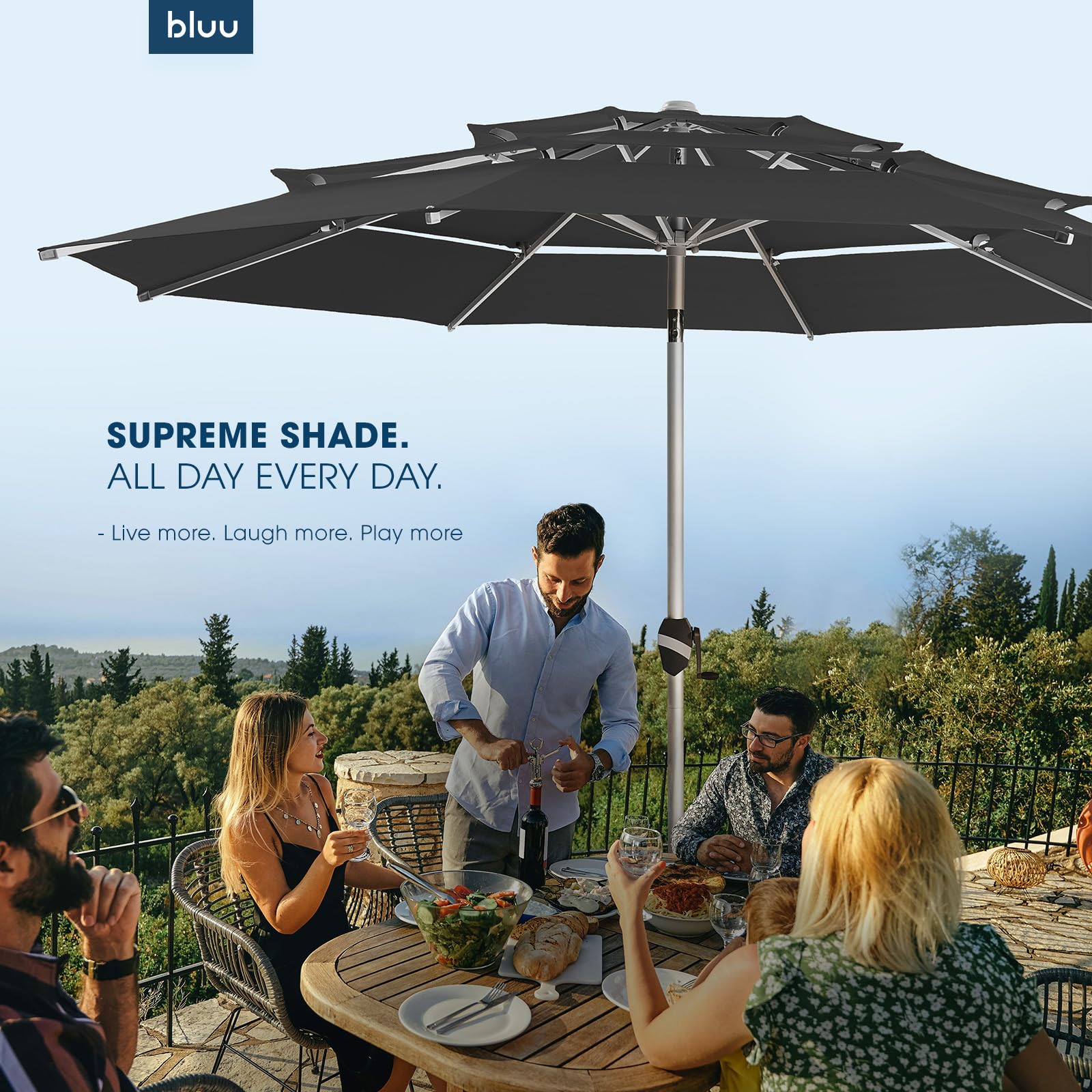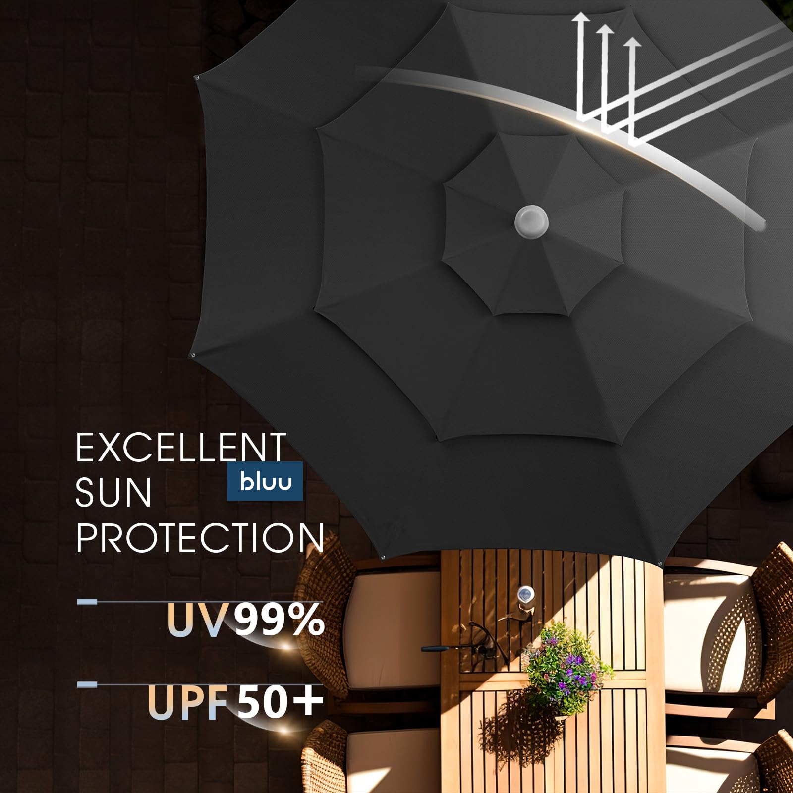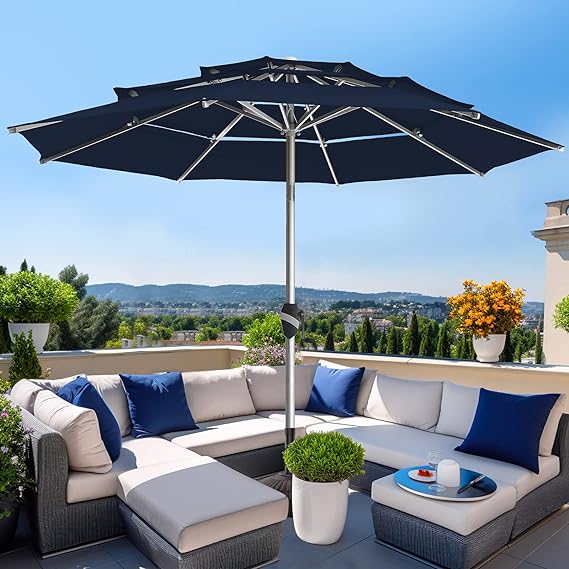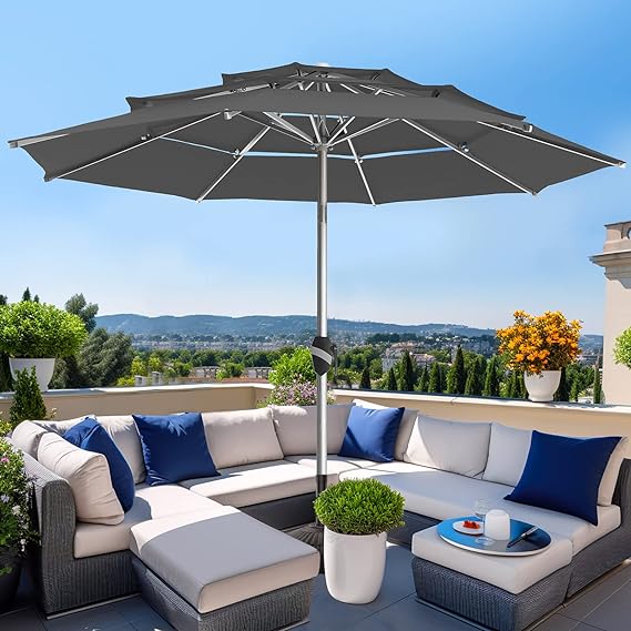 9 FT 3 Tiers Aluminum Outdoor Patio Umbrella, 5-YEAR Fade-Resistant Outdoor Market Table Umbrella