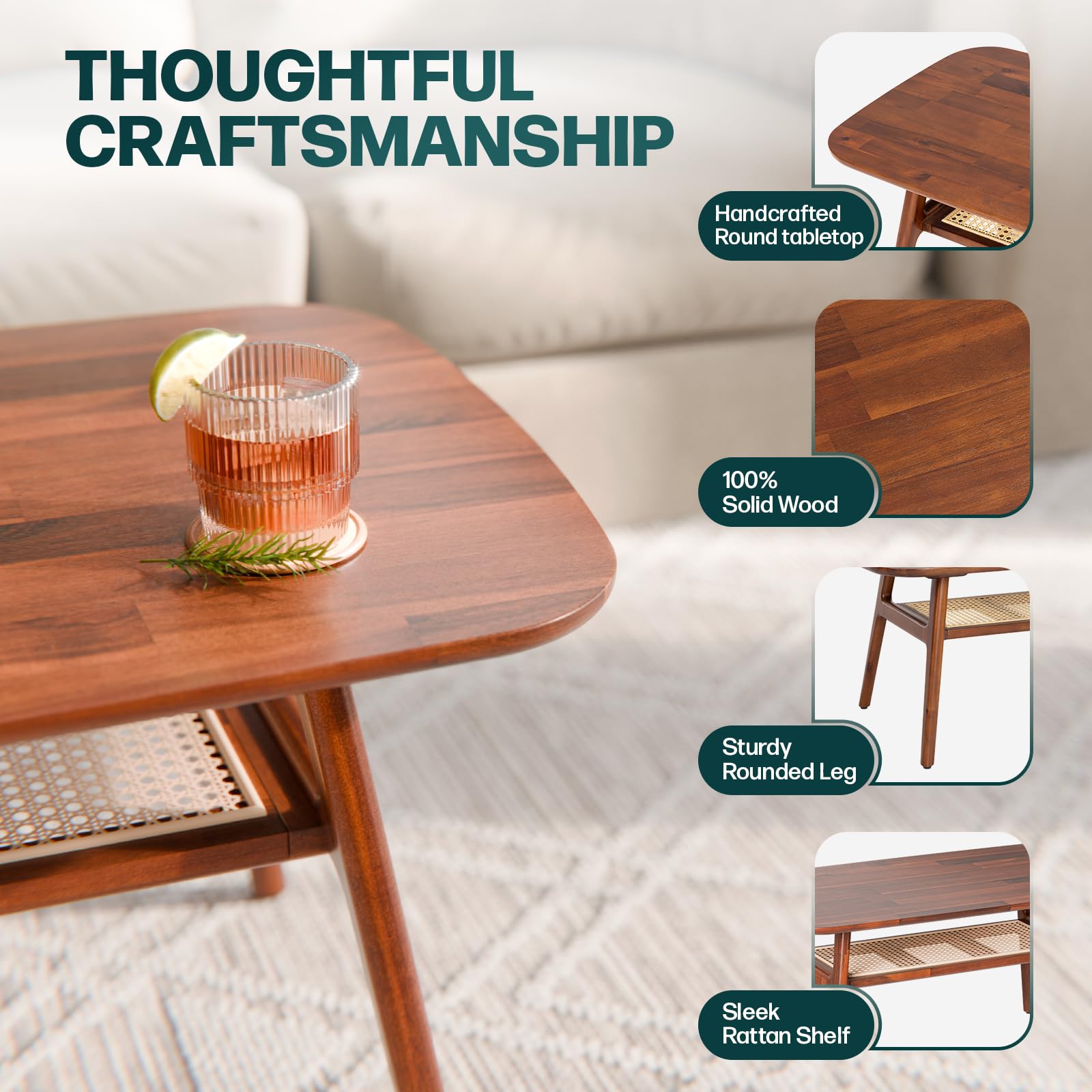 - A STUNNING COMBINATION: This Living Room Table Combines the Rich, Warm Beauty of Acacia Wood With the Intricate, Woven Texture of Synthetic Rattan, Adding a Touch of Elegance to Any Living Space