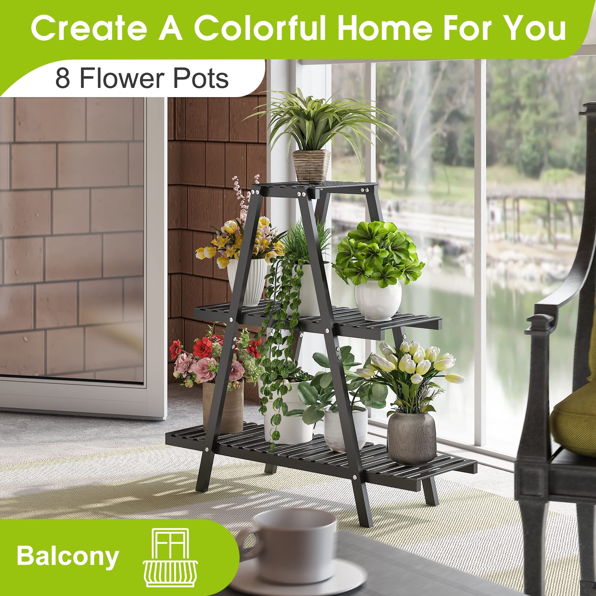 - Spacious 3-Tier Structure: Holds up to 8 pots of plants, maximizing display space while keeping an organized look.
