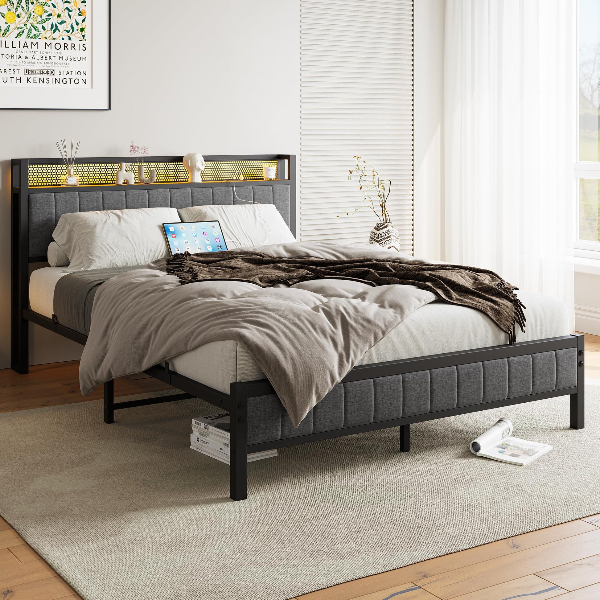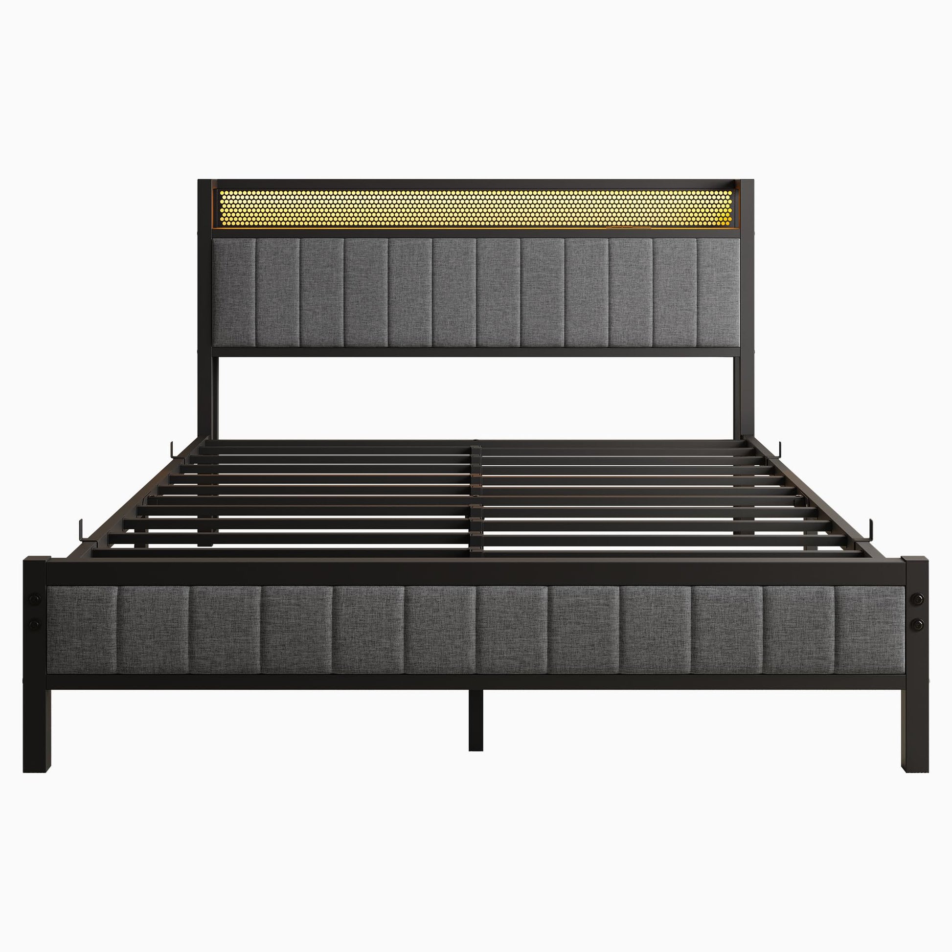Queen Bed Frame with Storage Headboard,USB Charging Station
