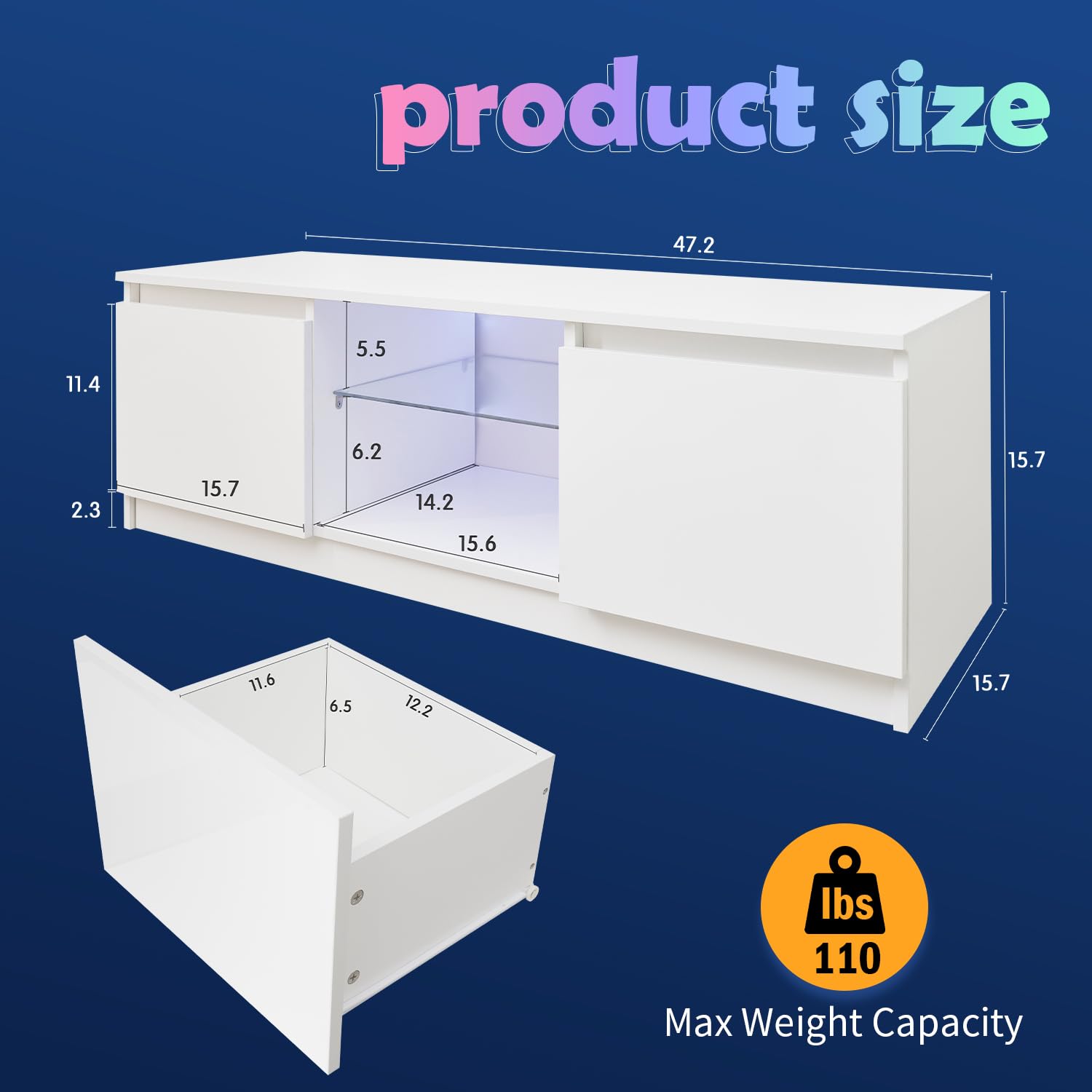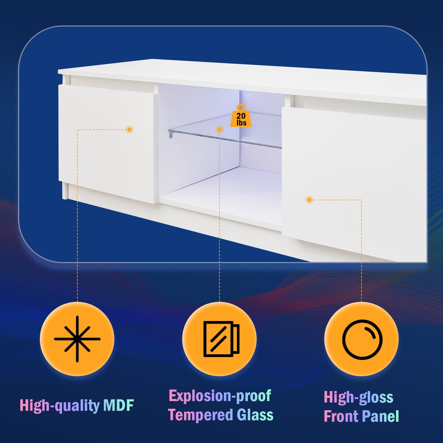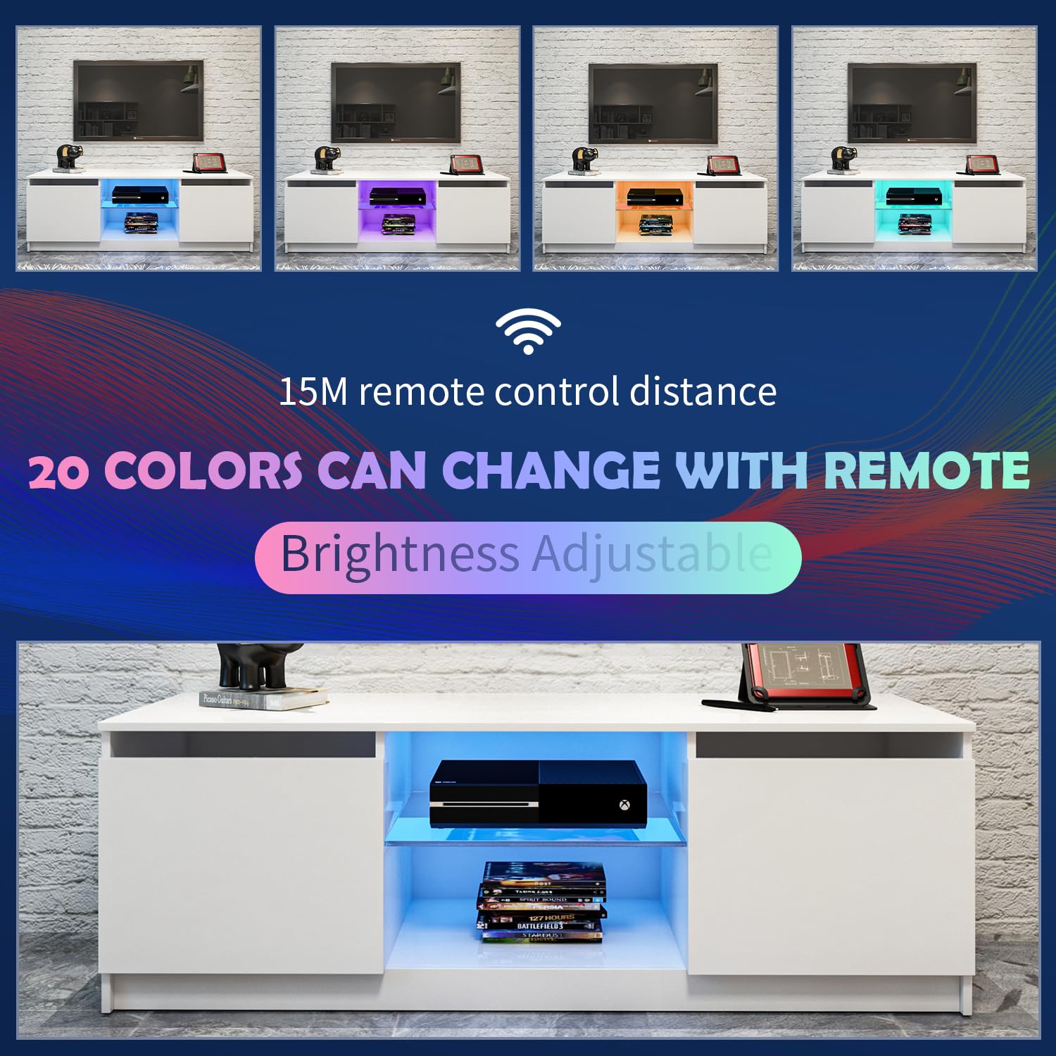 White TV Stand with LED Light for 55 Inch TV, Modern Entertainment Center Stand