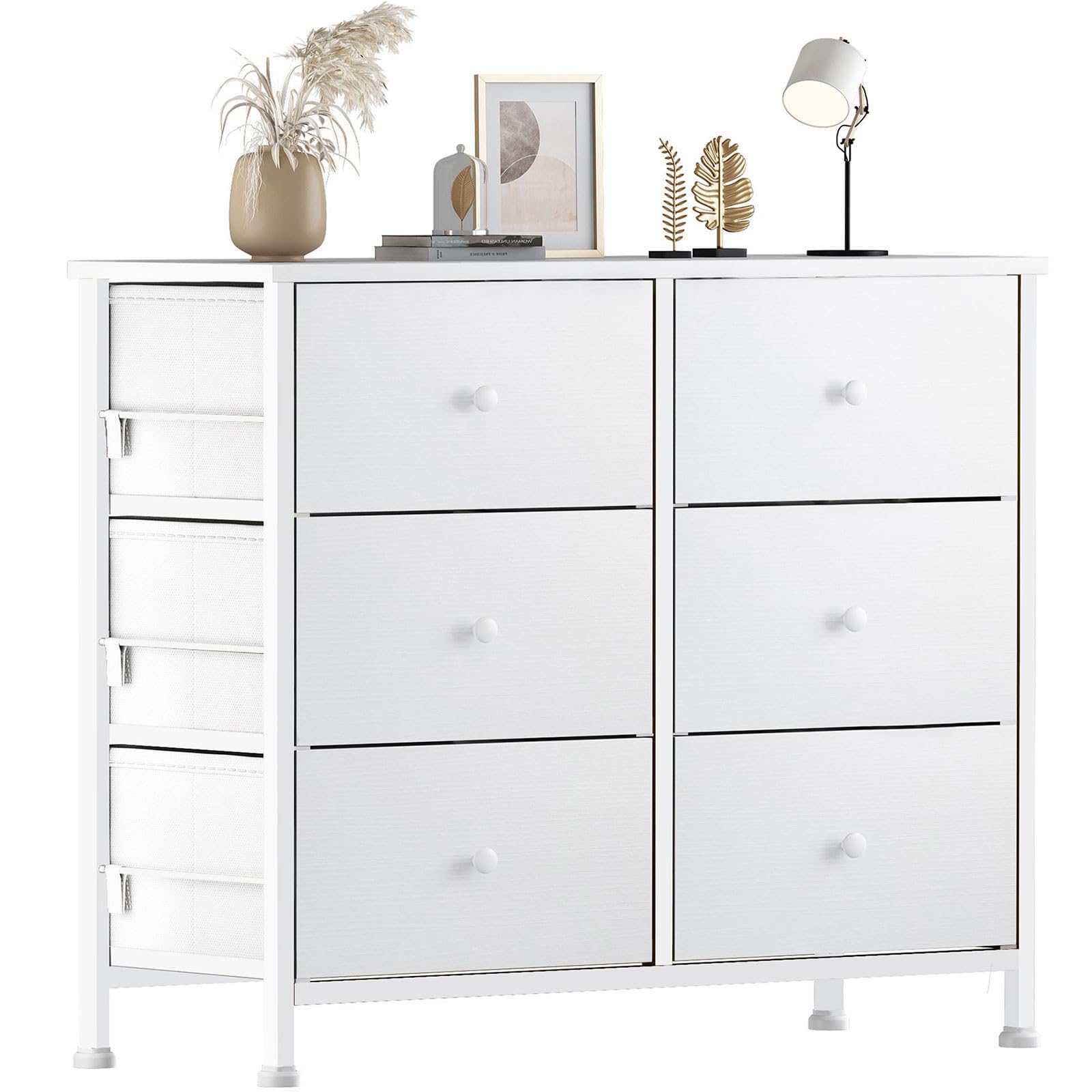 White Dresser for Bedroom 6 Drawer Organizers Fabric Storage Chest Tower