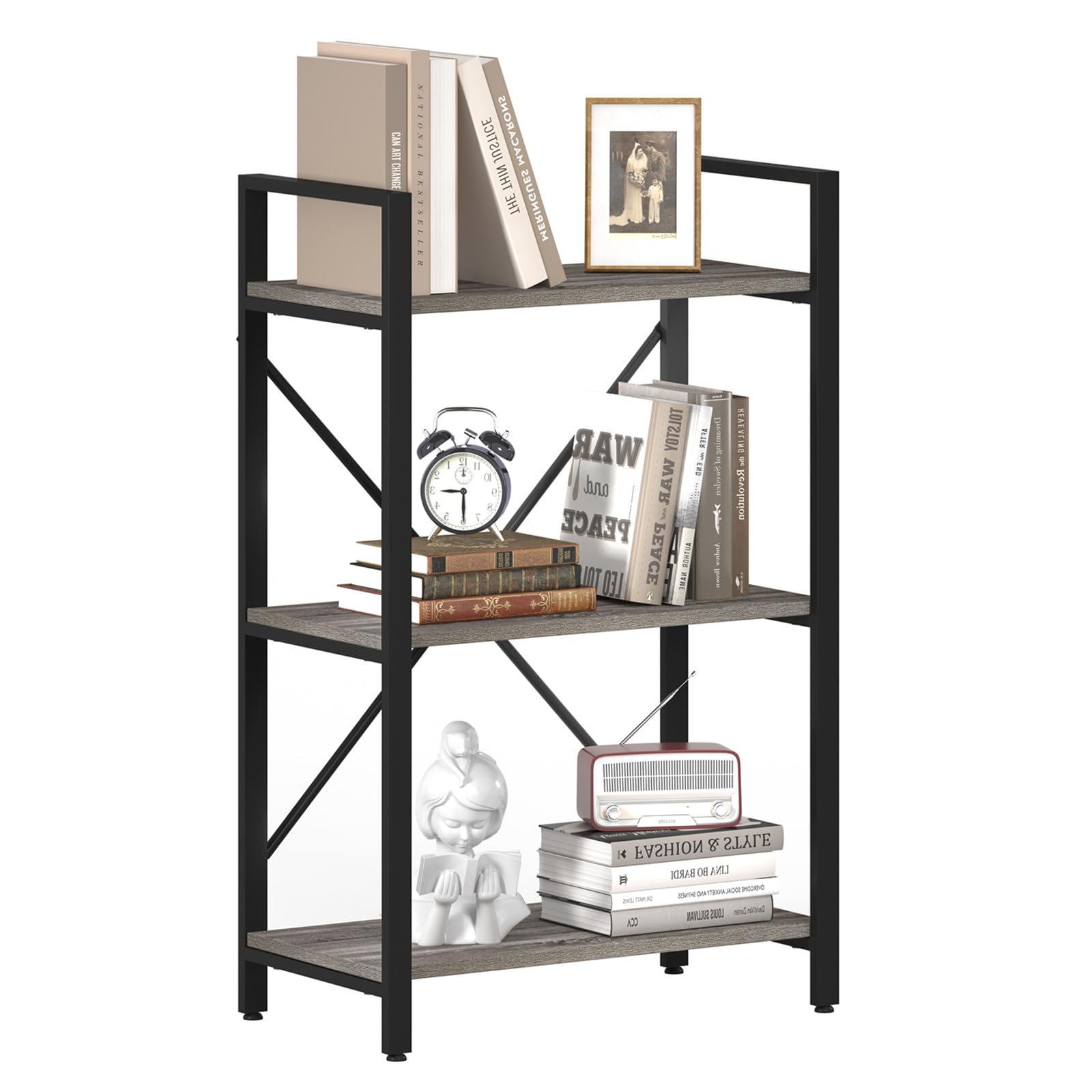 - Decorate Any Room: Simple and clean-lined design adds the industrially refined sensation to any space, making this 3-shelf bookcase a perfect addition to all kinds of retro style decoration, living room, bedrooms, restaurants, cafes, office and other places.