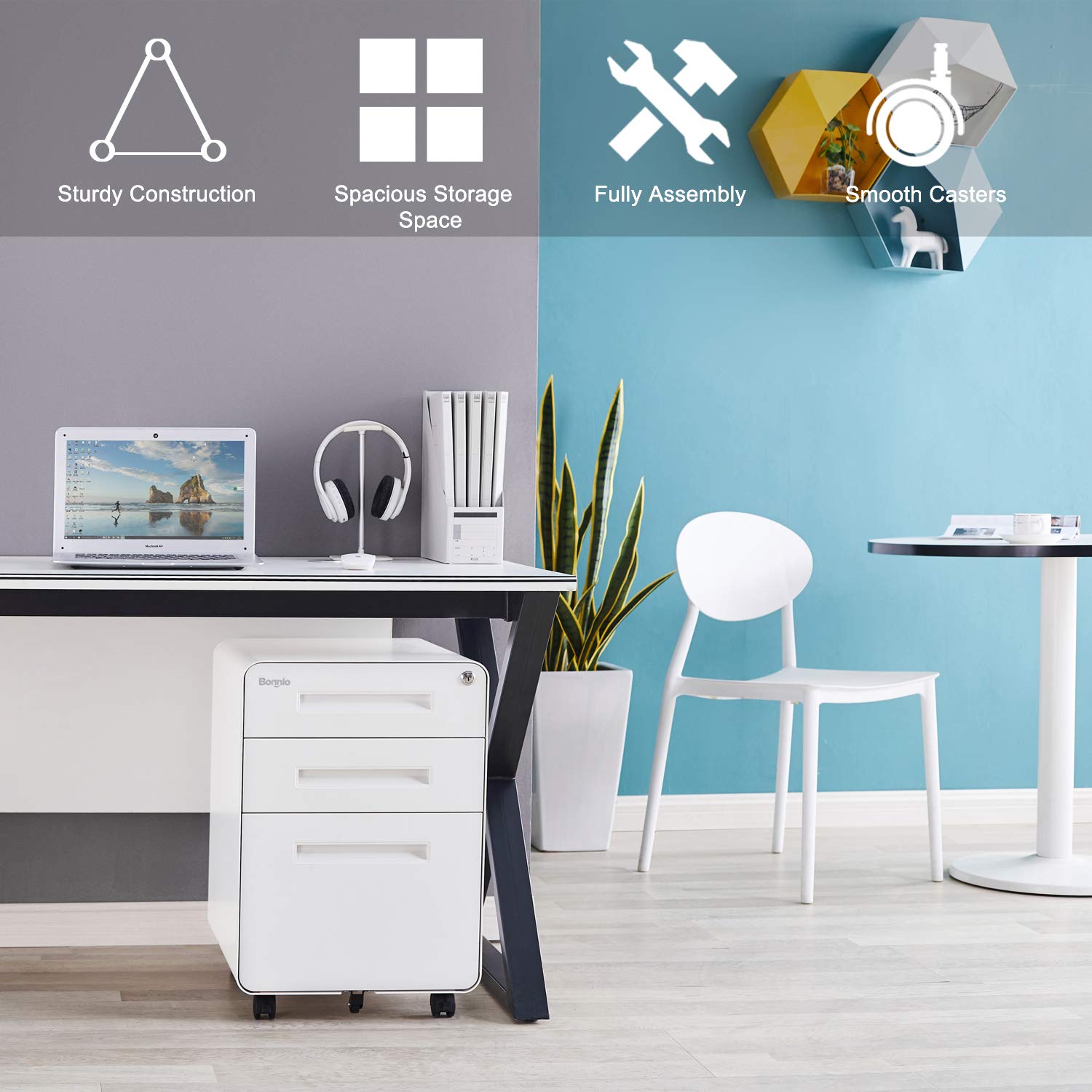 - Bonnlo rolling file cabinet with integrated locking system for added security and convenience. It secures all drawers with a single lock. No need to distinguish among keys for different drawers