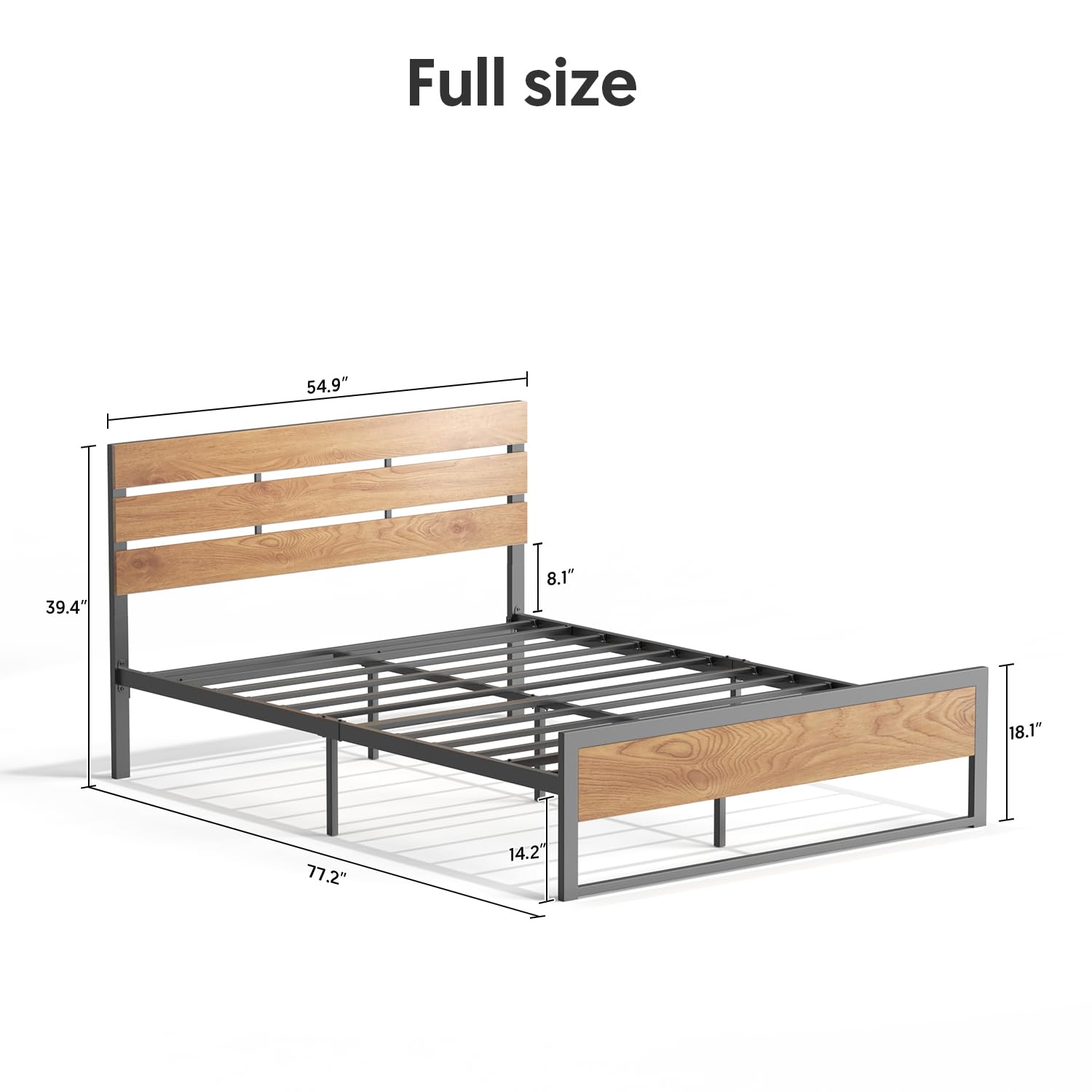 Full Size Bed Frame Steady Steel Platform with Wood Headboard/Footboard