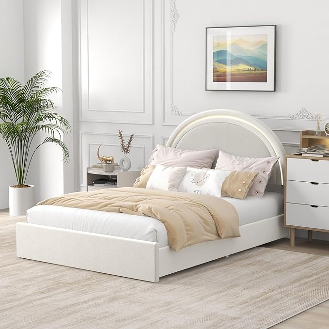 Full Size Bed Frame with Elegant Round Headboard, Platform Bed Frame with 4 Storage Drawers,