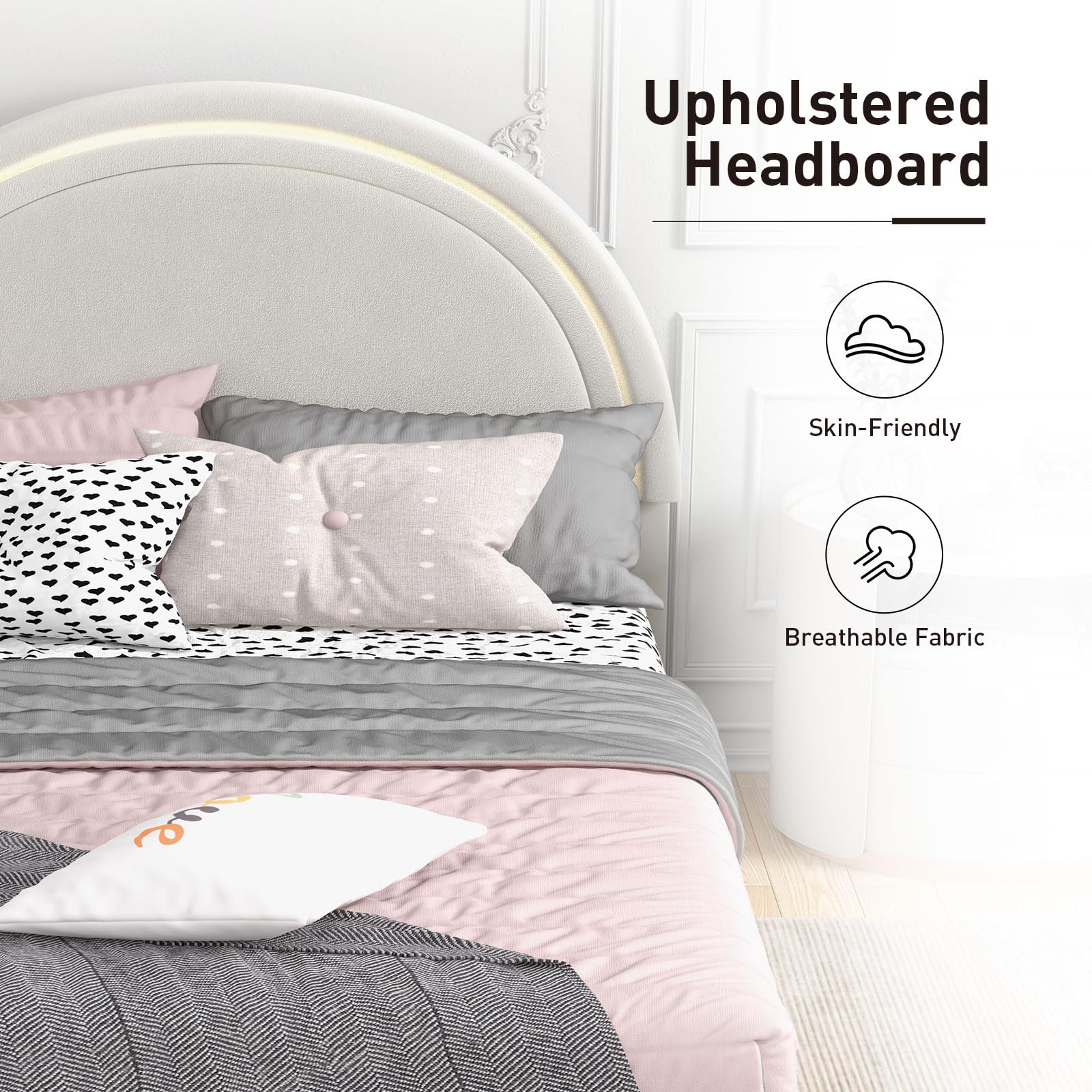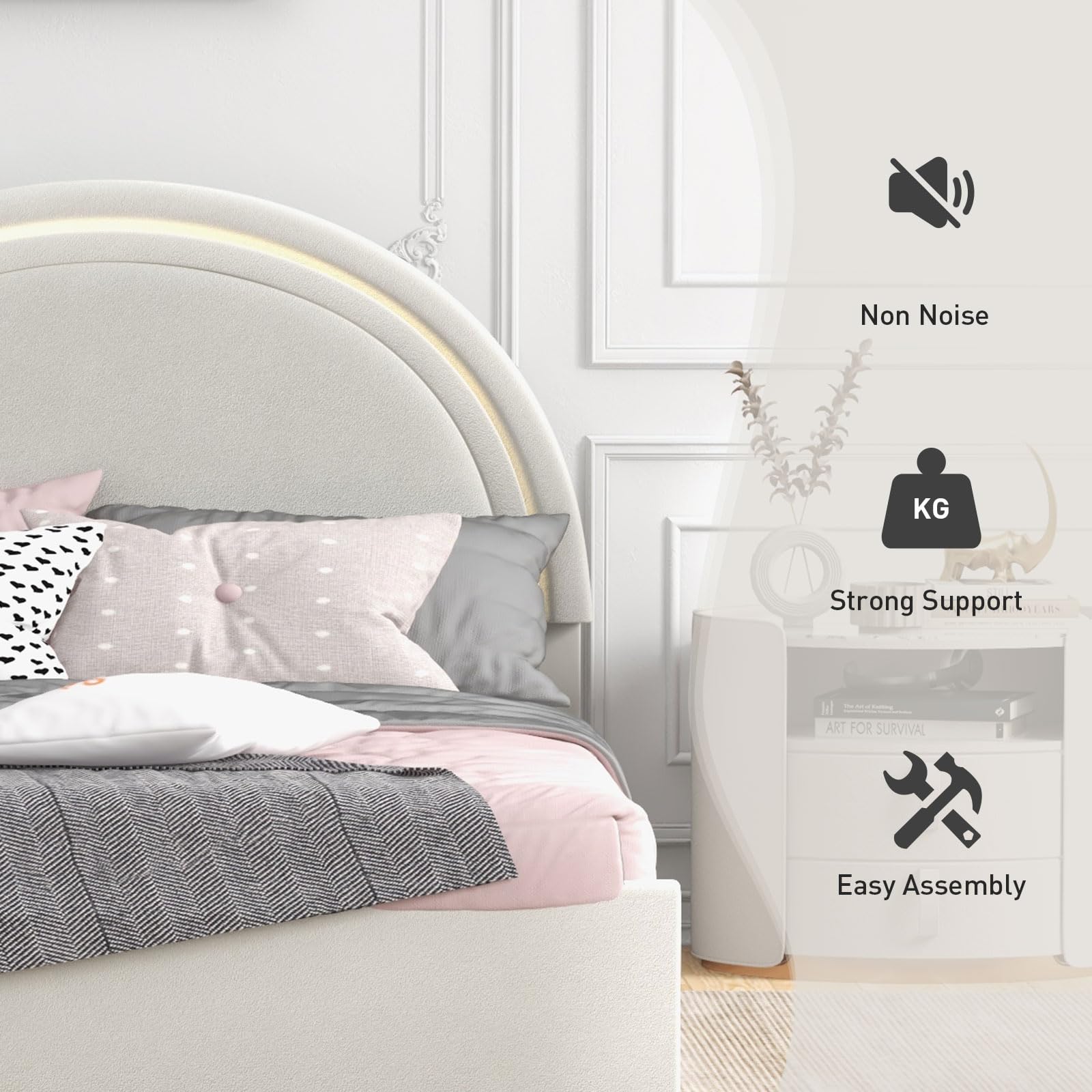 - LED Bed Frame: Integrated warm yellow lighting adds a subtle glow that enhances the ambiance of your bedroom
