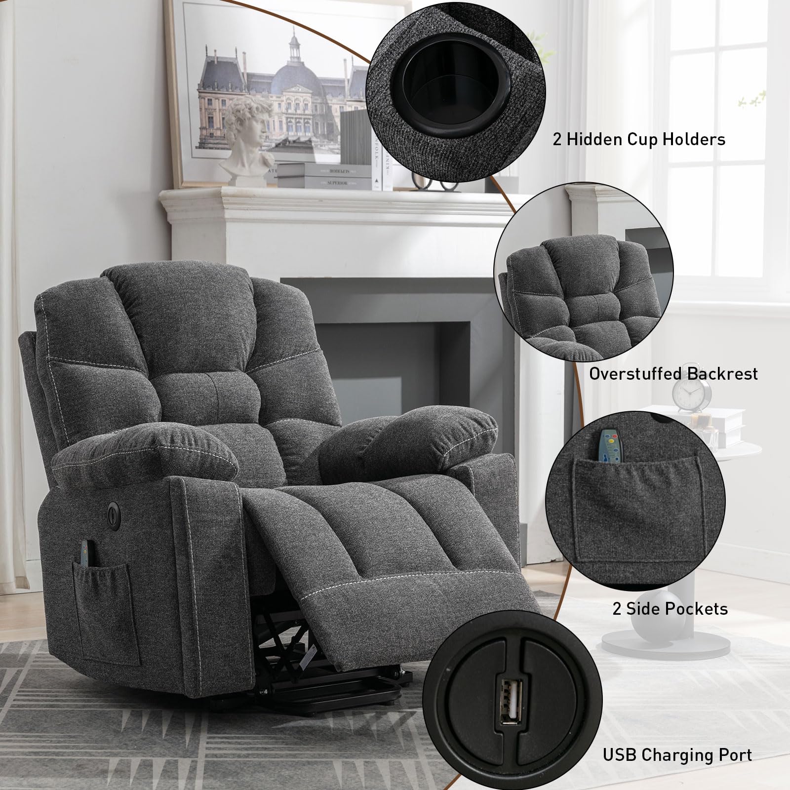 - Luxurious Comfort: Our power lift recliner chair boasts a generous 21.3"D x 22"W large seat, offering ample space for relaxation. Designed with soft durable chenille fabric,well-padded backrest, and overstuffed armrests, this comfortable single sofa provides an unparalleled comfort and support for you and your family.
