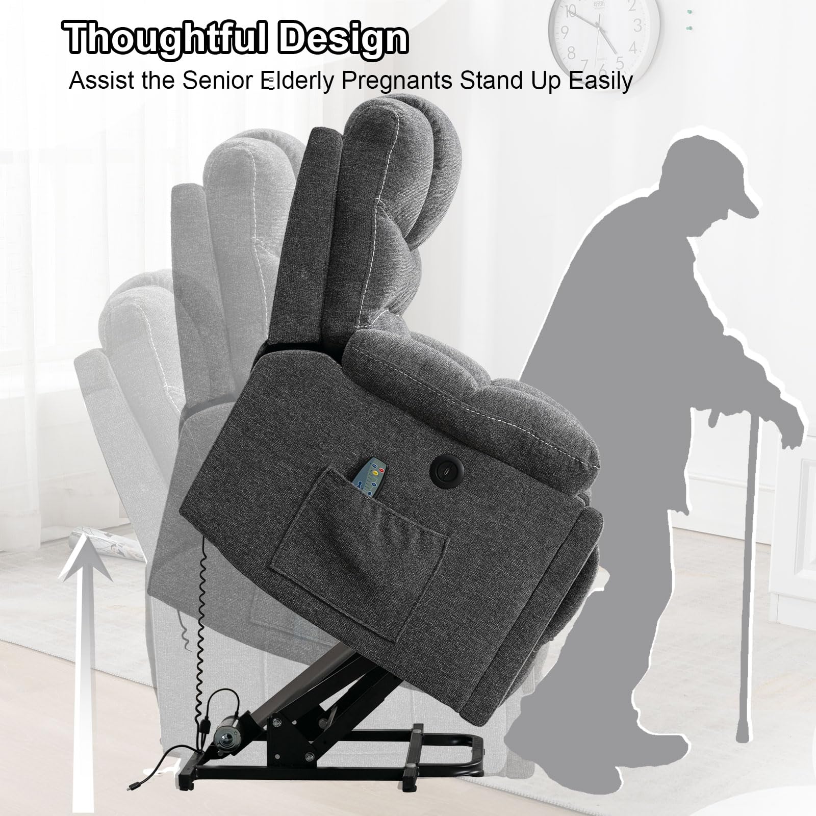 Power Lift Recliner Chair with Massage and Heat, Large Comfortable Chenille