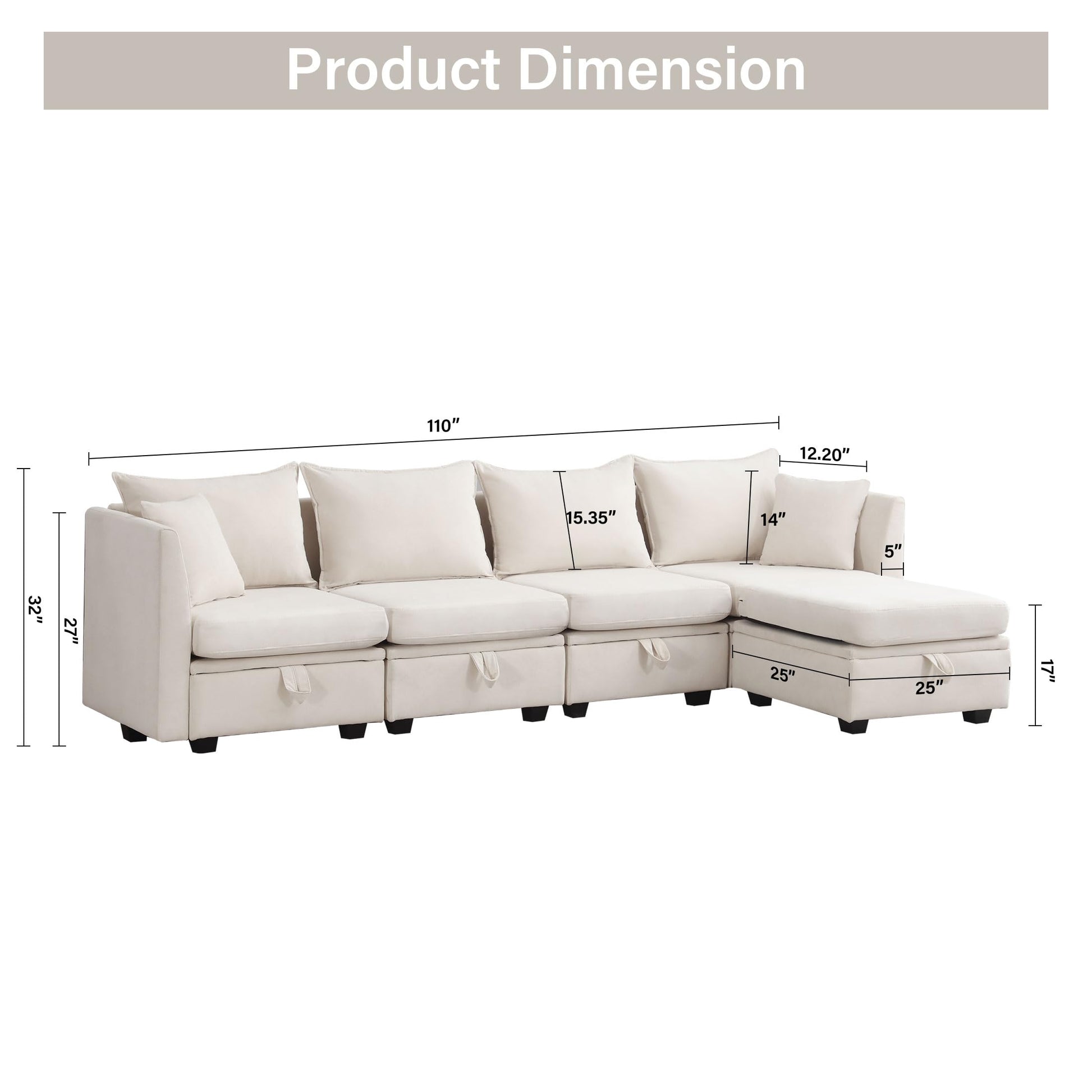 Modular Sectional Sofa, Convertible L Shaped Sofa Couch with Storage