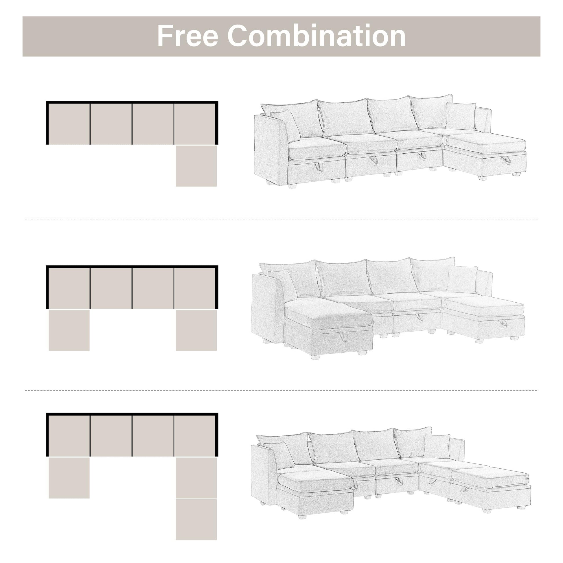 - FLEXIBLE COMBINATION MODULE The module sofa has three module types, which can be combined to match different spaces to meet different room layout needs. The components are universal, so you can assemble the sofa into a single or multi-seat sofa, or even into a sofa bed, and place it wherever you need it. We provide sets of 5-7 pieces to choose from. As long as you want, you can create more combinations. They can better integrate with your room, adding decoration and practicality to the space.