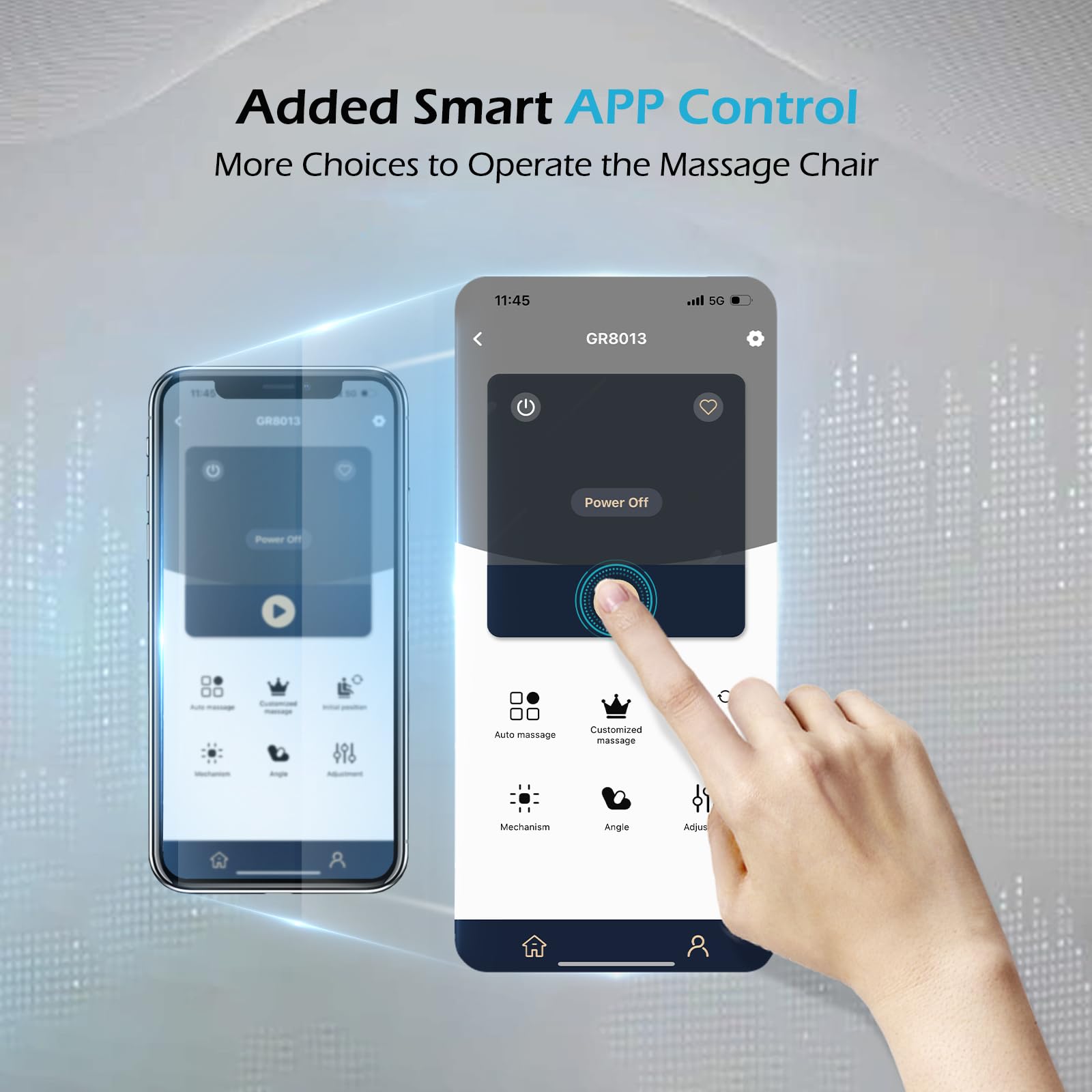 - Bluetooth Design The wireless bluetooth speakers are located on the upper arm area of the massage chair, music can be played by connecting the blue tooth to a smart phone or tablet device. Making you have a more relaxed environment during massage with wonderful music sound surround.