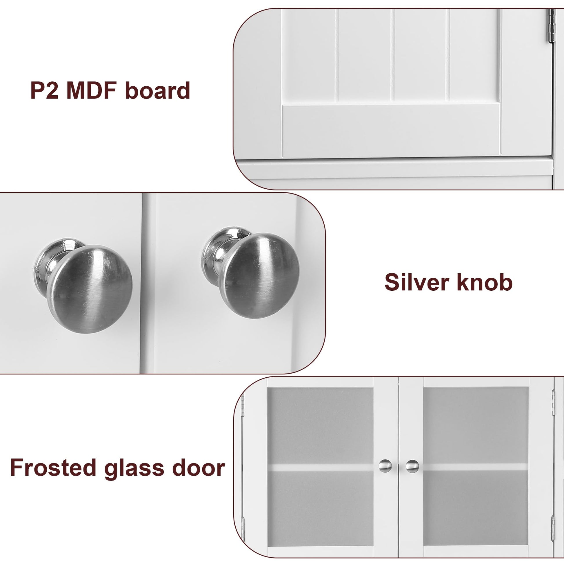 Bathroom Cabinet, Storage Cabinet with Adjustable Shelves & Glass Doors, Freestanding