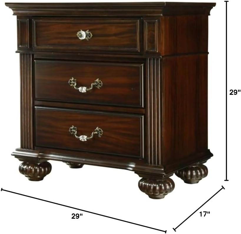 Transitional 3 Drawer Wooden Bedside Nightstand