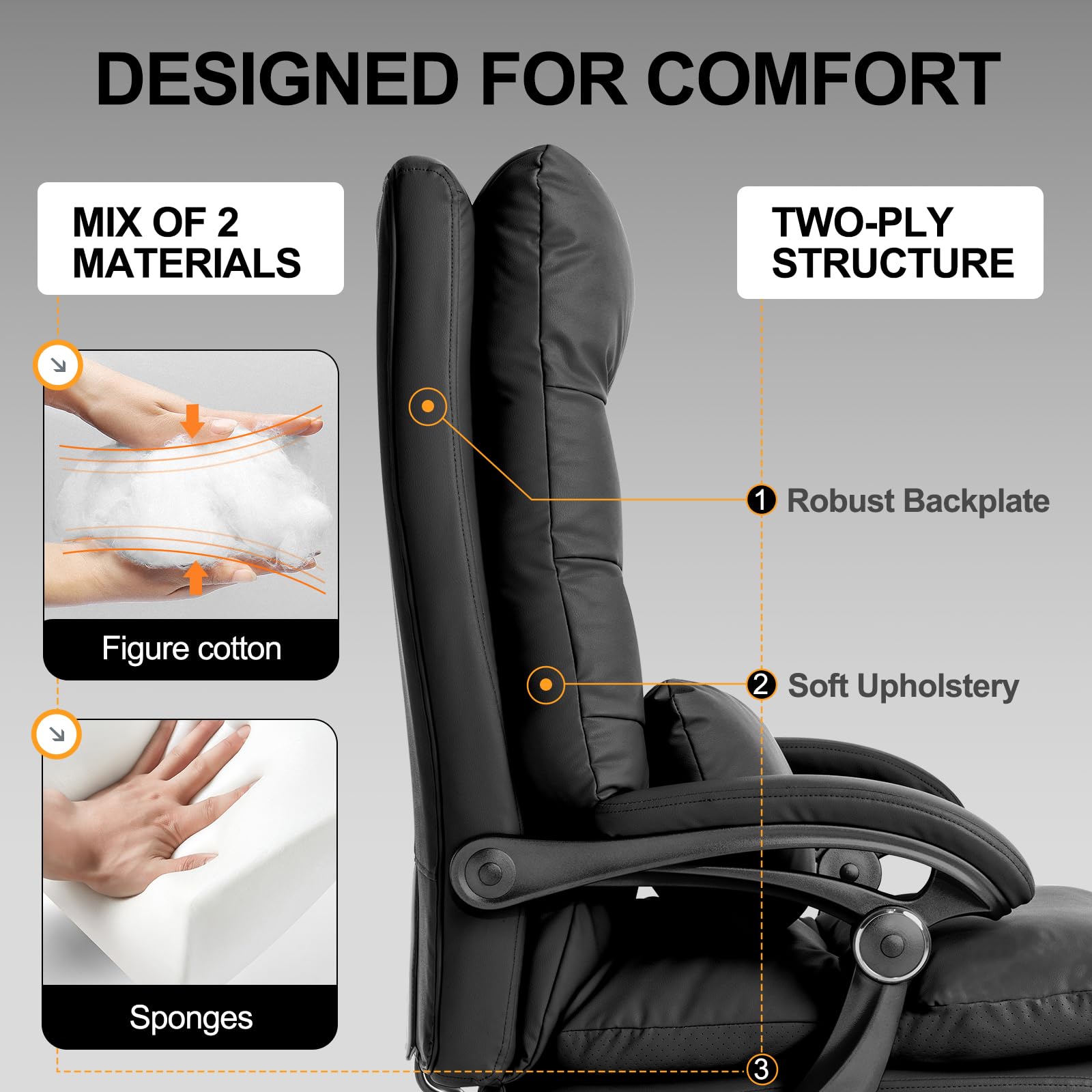- Ultimate Comfort Ergonomically designed high back office chair gently wraps your body and supports your neck and spine. Double thick cushion filling with natural non-pollution virgin cotton, offers all day comfort.