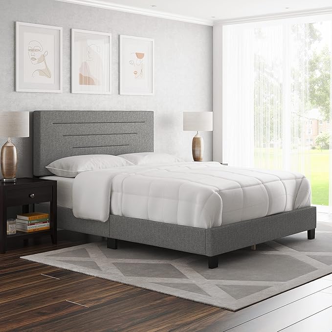 Cordoba Upholstered Platform Bed Frame with Headboard, Mattress Foundation Required