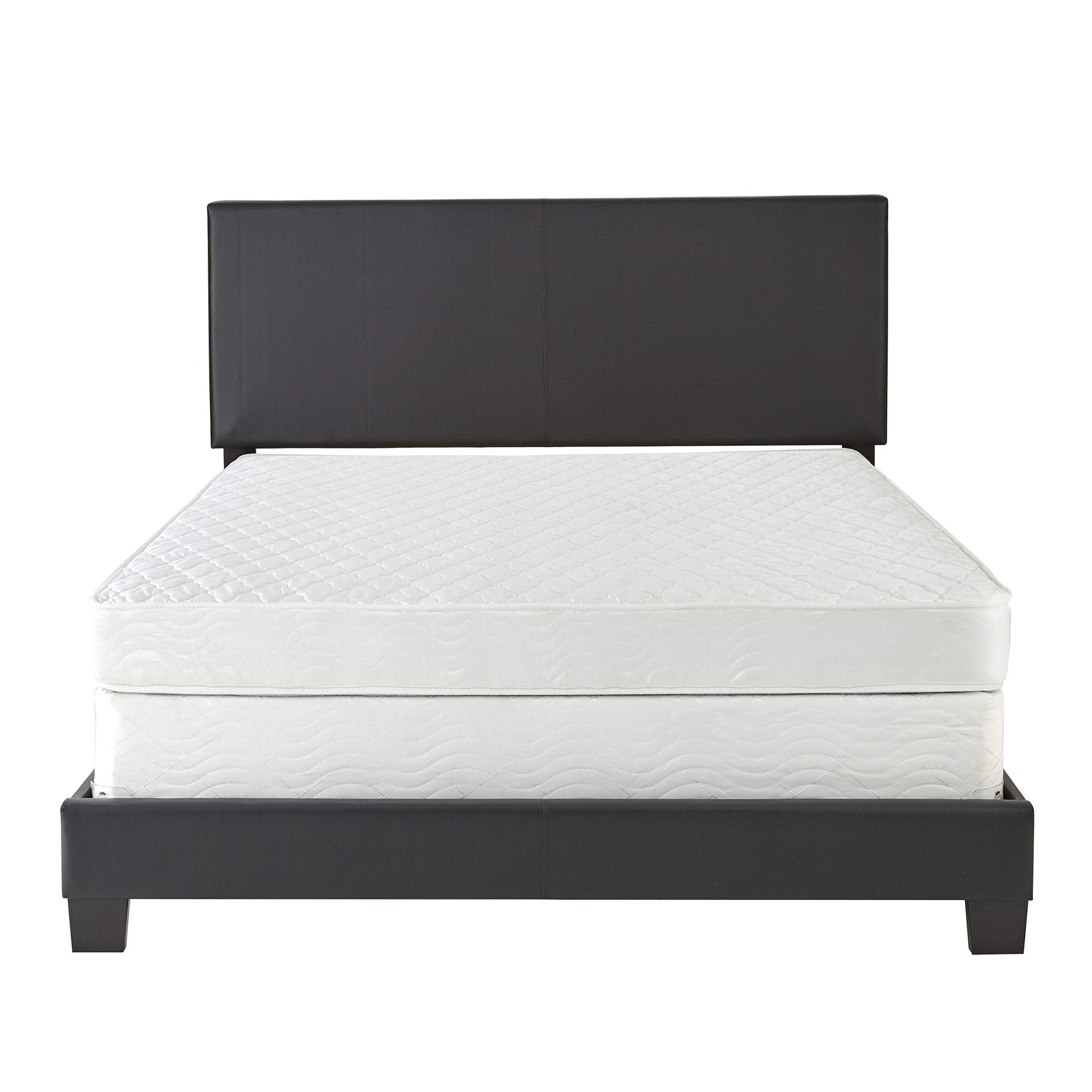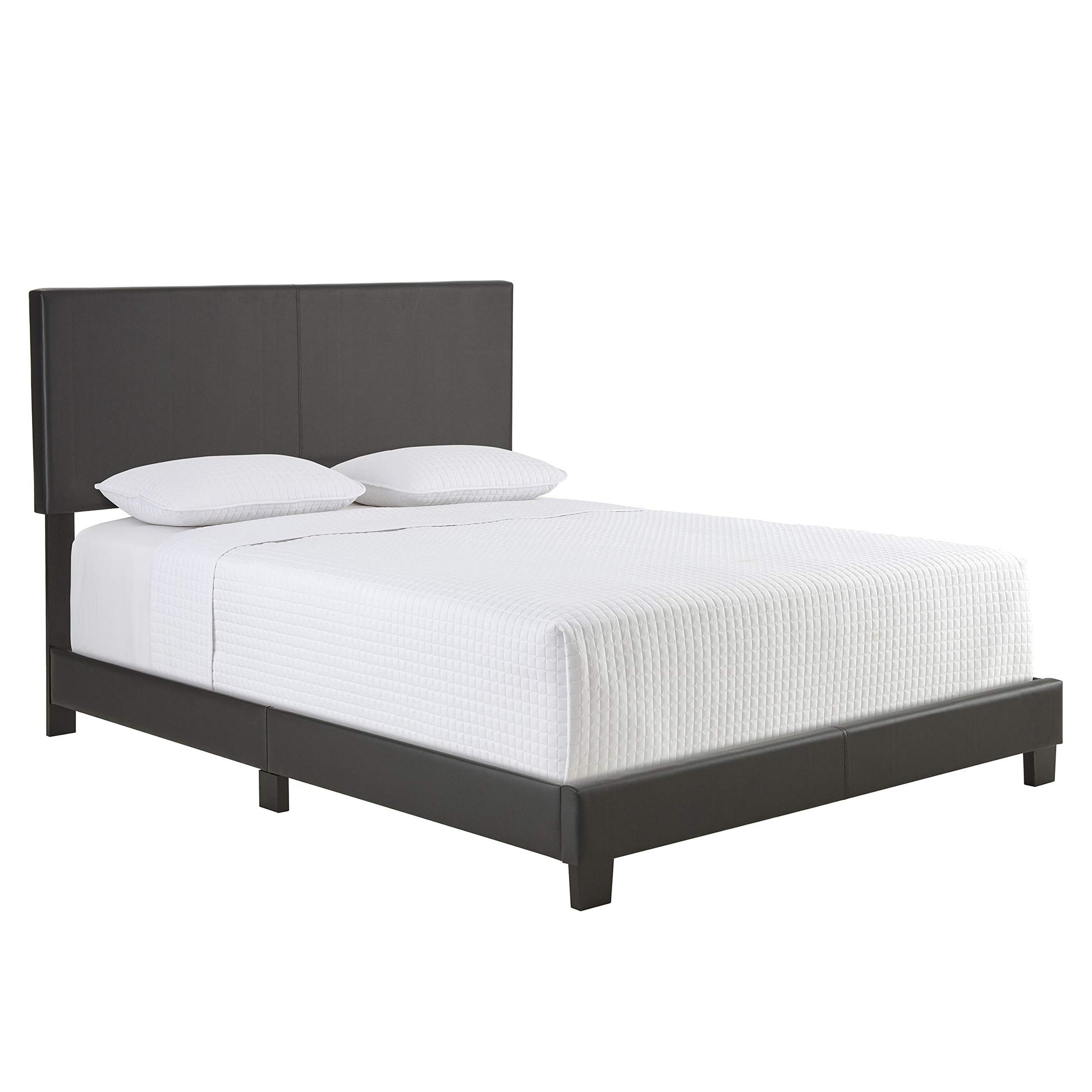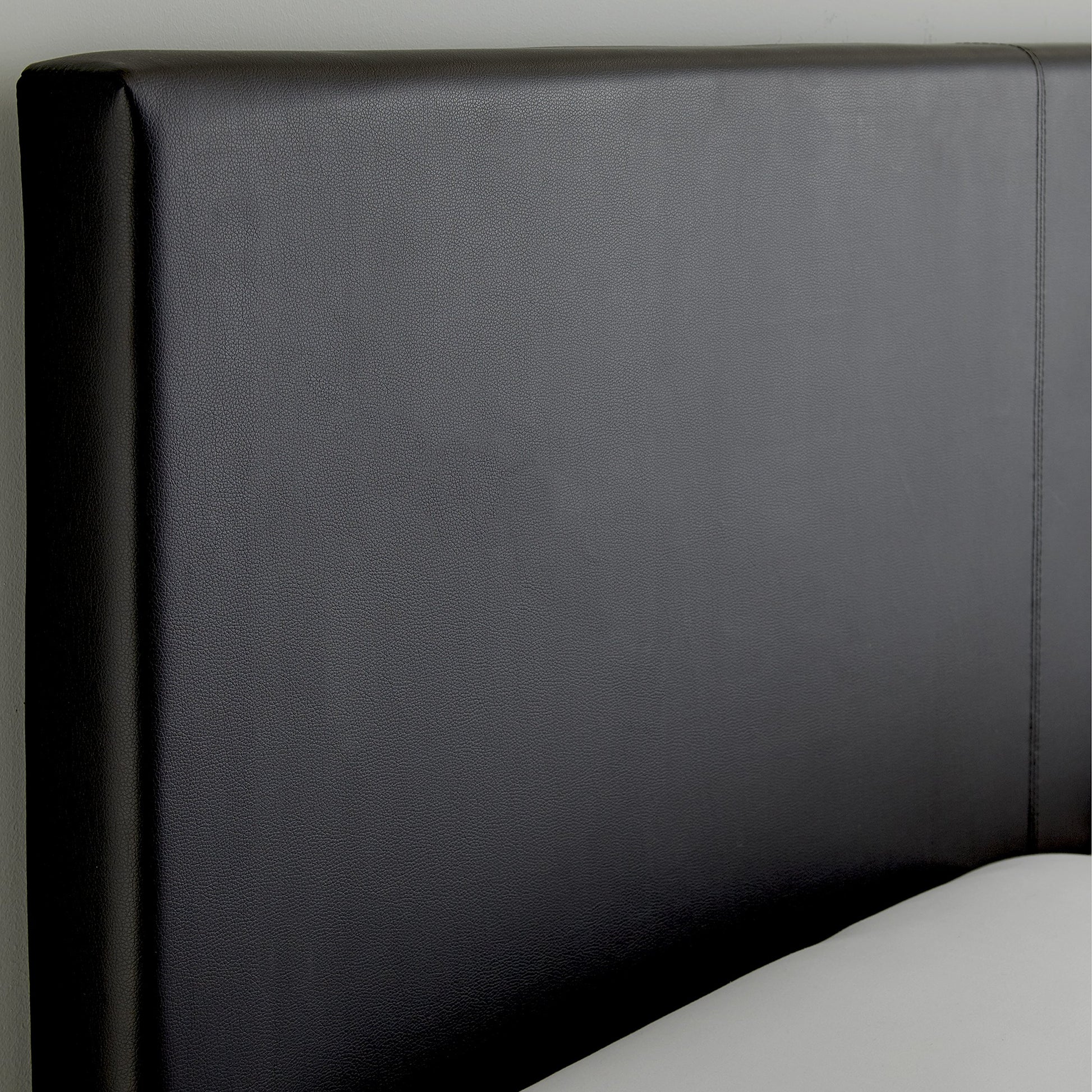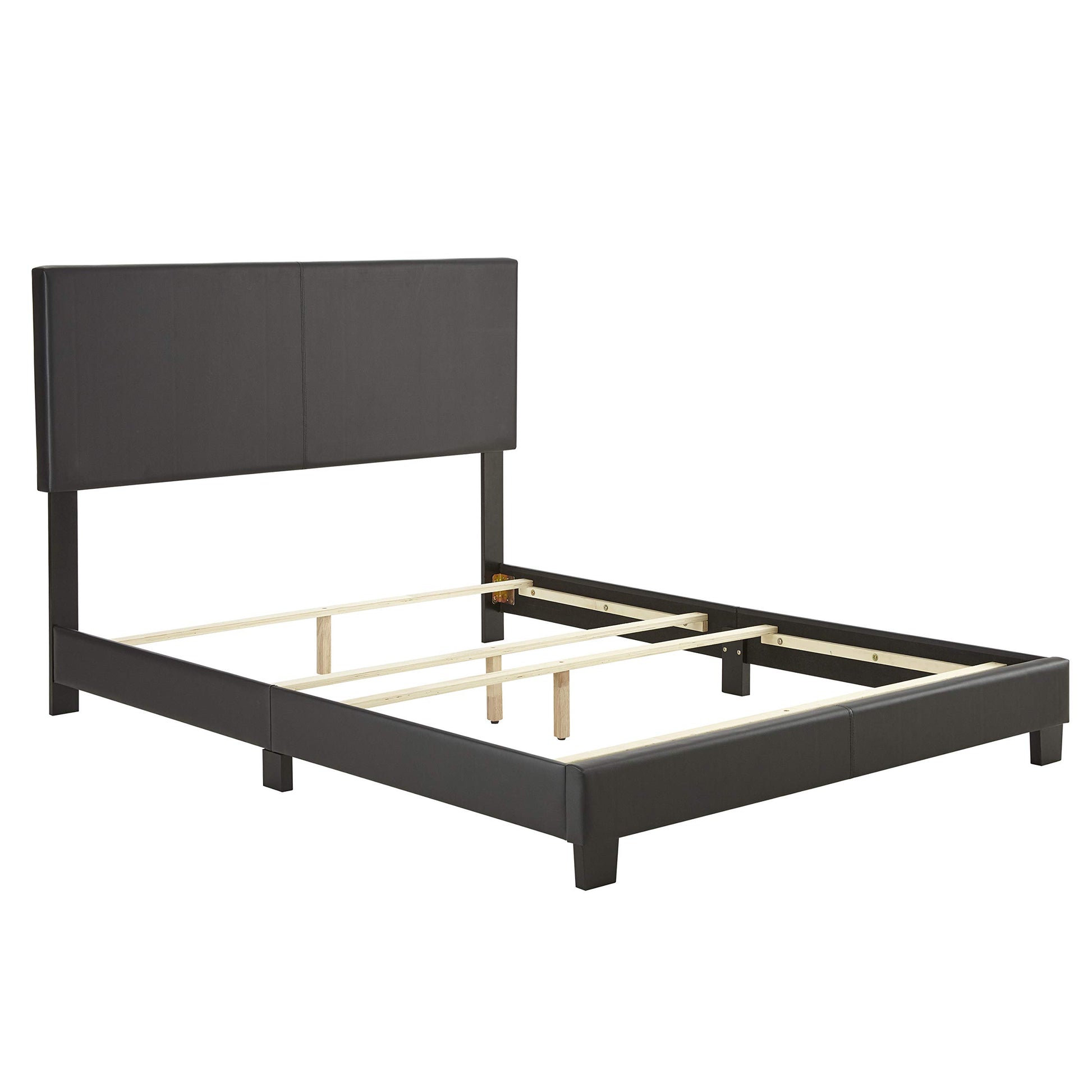 - Contemporary padded platform bed frame features smooth simulated leather, fitting a wide array of bedroom furnishings and décor