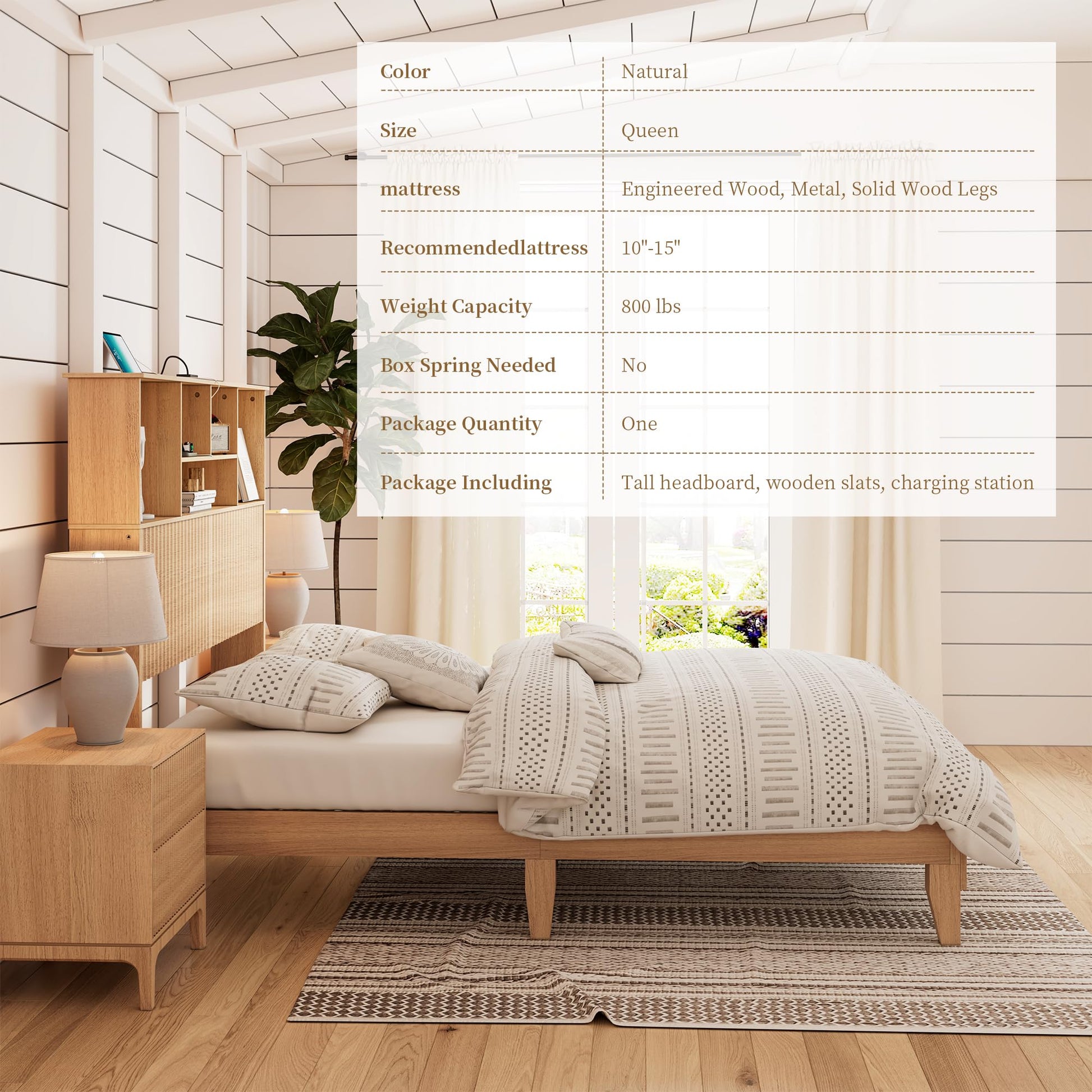 - Unique Storage Bookcase & Charging Station: The headboard has a 2-tier bookshelf and a safe UL-certified charging station. You can just reach out and get what you need at the head of the bed and charge your phone or tablet. Provides great convenience.