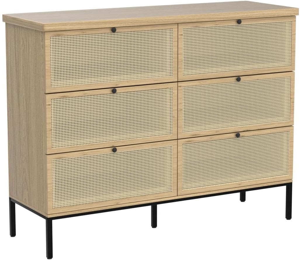 Natural Rattan 6 Drawer Double Dresser for Bedroom, Industrial Wood Clothing Organizer