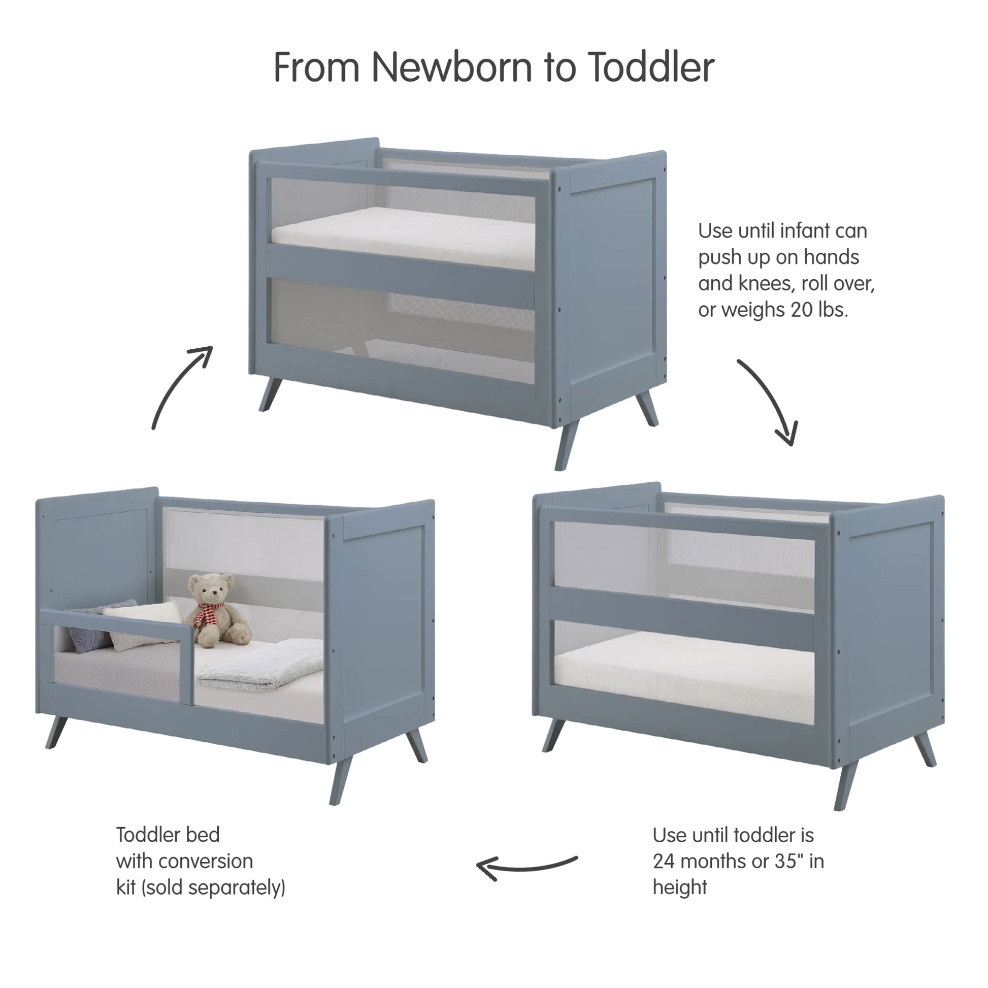 Breathable Mesh 3-in-1 Convertible Crib (Toddler Bed Kit Sold Separately Steel Gray
