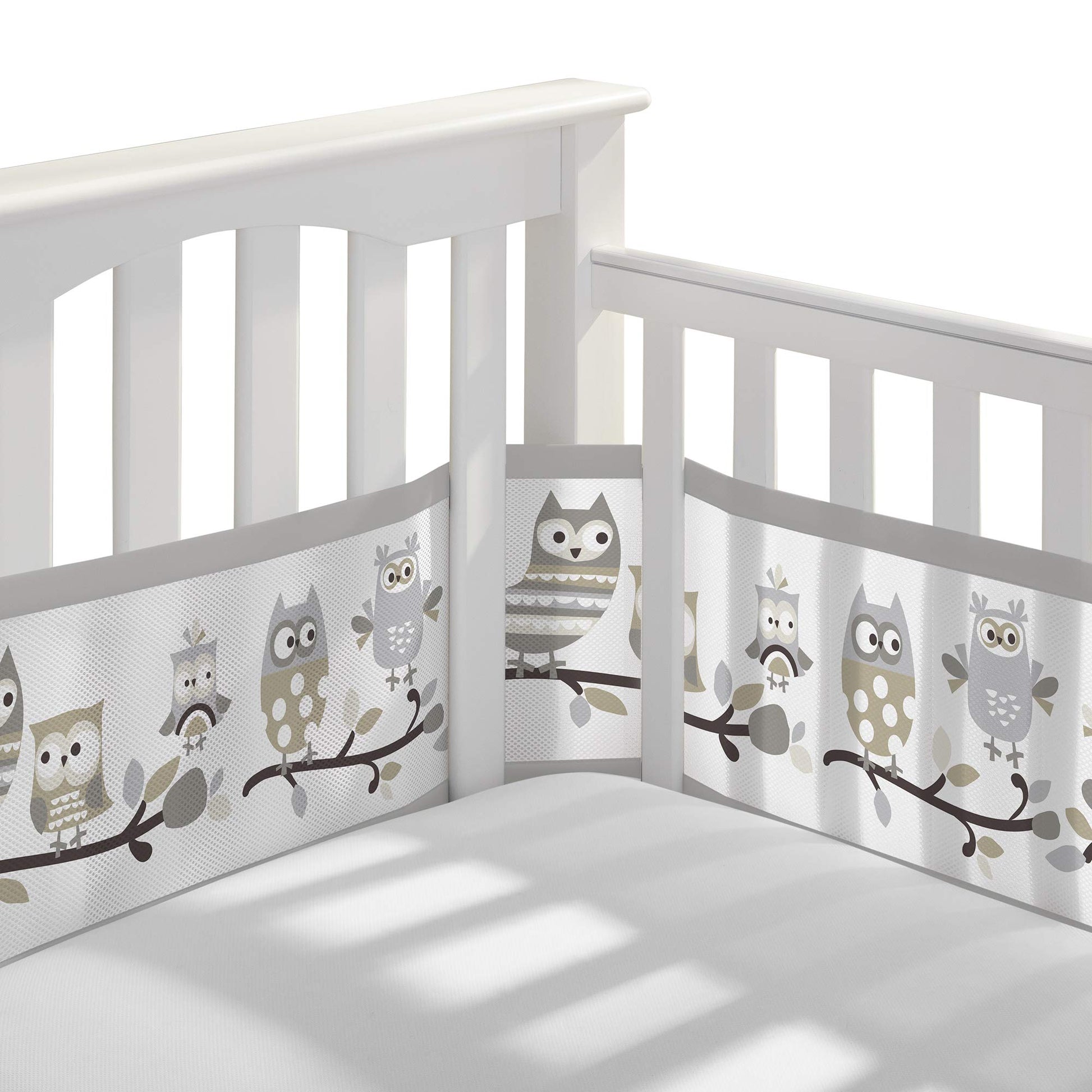 Breathable Mesh Liner for Full-Size Cribs, Classic 3mm Mesh, Owl Fun Gray (Size 4FS