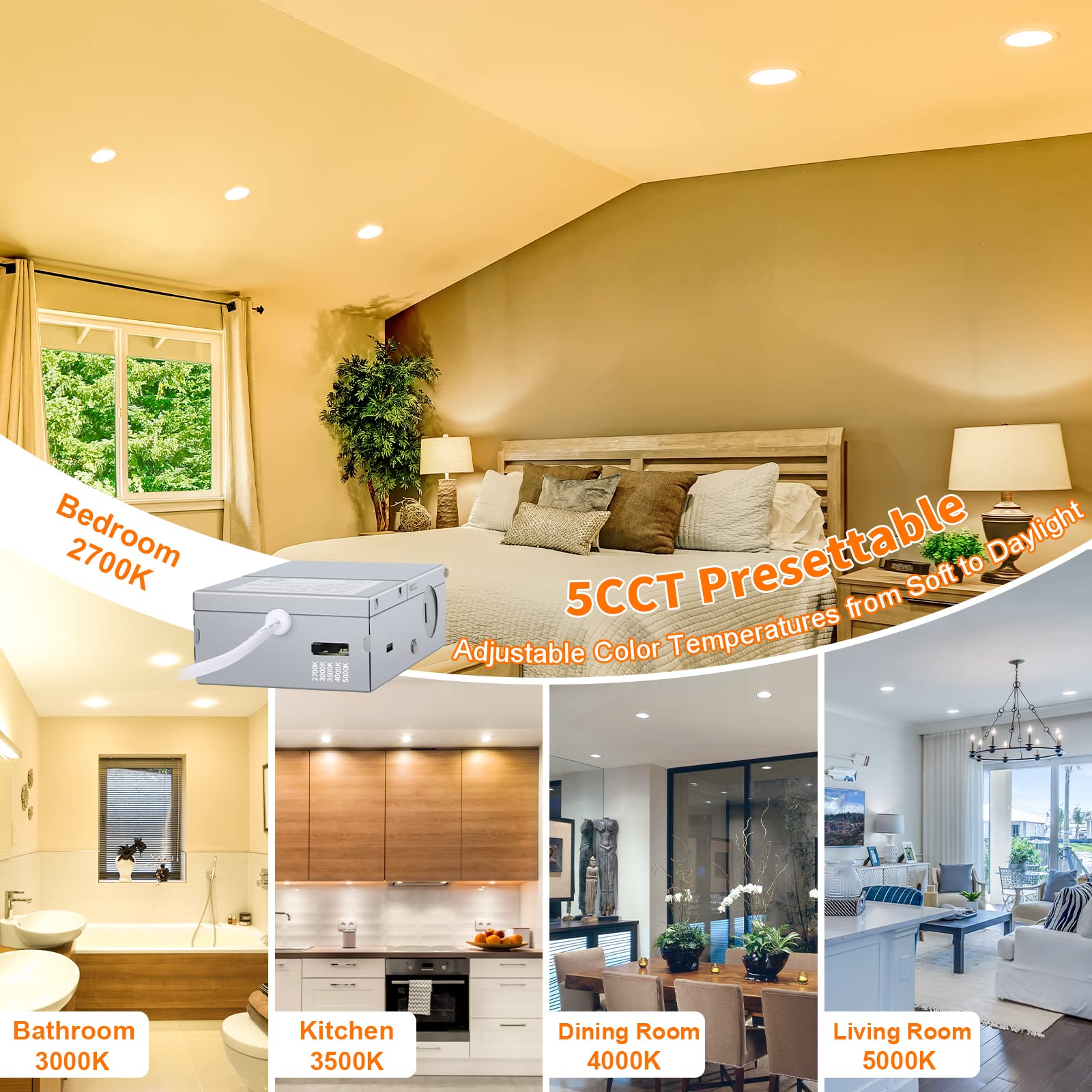 - Impressive 5CCT Selectable Feature - With the ability to choose from color temperatures of 2700K, 3000K, 3500K, 4000K, and 5000K, you can select the perfect match for your preferences and needs. As a standout feature of Brightever LED lights, this option eliminates the inconvenience of returning or exchanging products due to inappropriate color temperatures. Please note that you can set your preferred color temperature using the DIP switch on the J-box before installation.