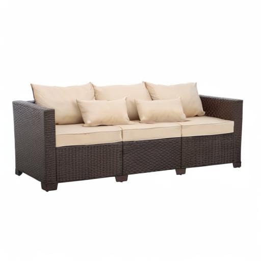 Brown Wicker 3-Seater Outdoor Sofa - Deep Seat, High Backrest