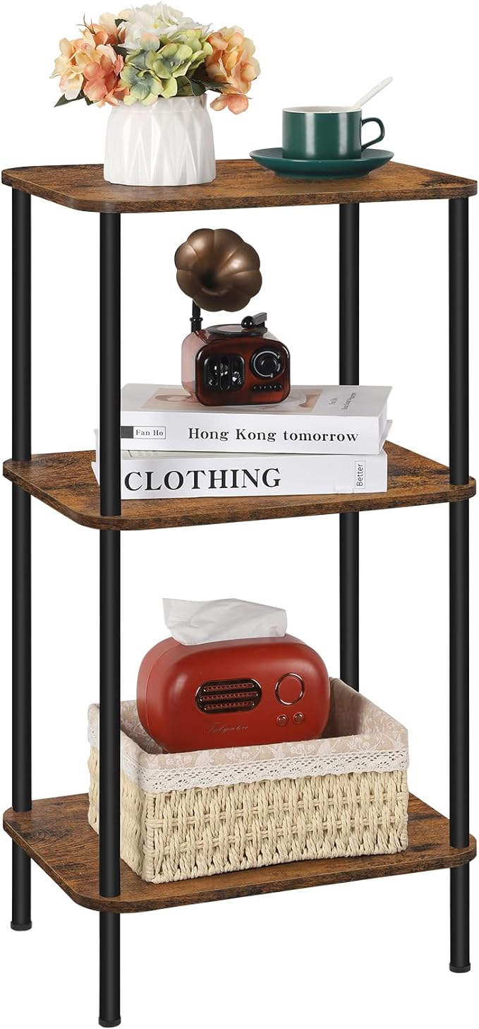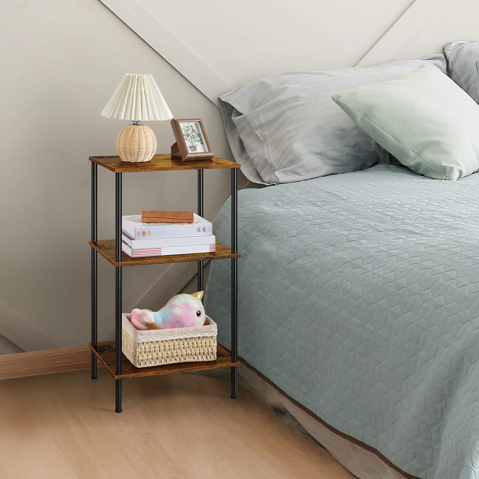 - The 30-inch high perfectly fits your bed and sofa. The 3 tier open shelf design provides spacious storage space so that your daily necessities are within reach. Tall nightstand size: 15.7''W x 12.6''L x 30''H, takes a small footprint, which is very suitable for small space storage.